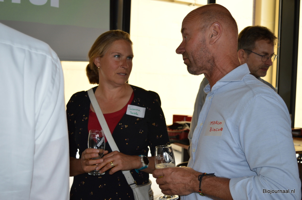 Susanne de Raaij (Biobite) praat bij met Marco Molier (BioCore).