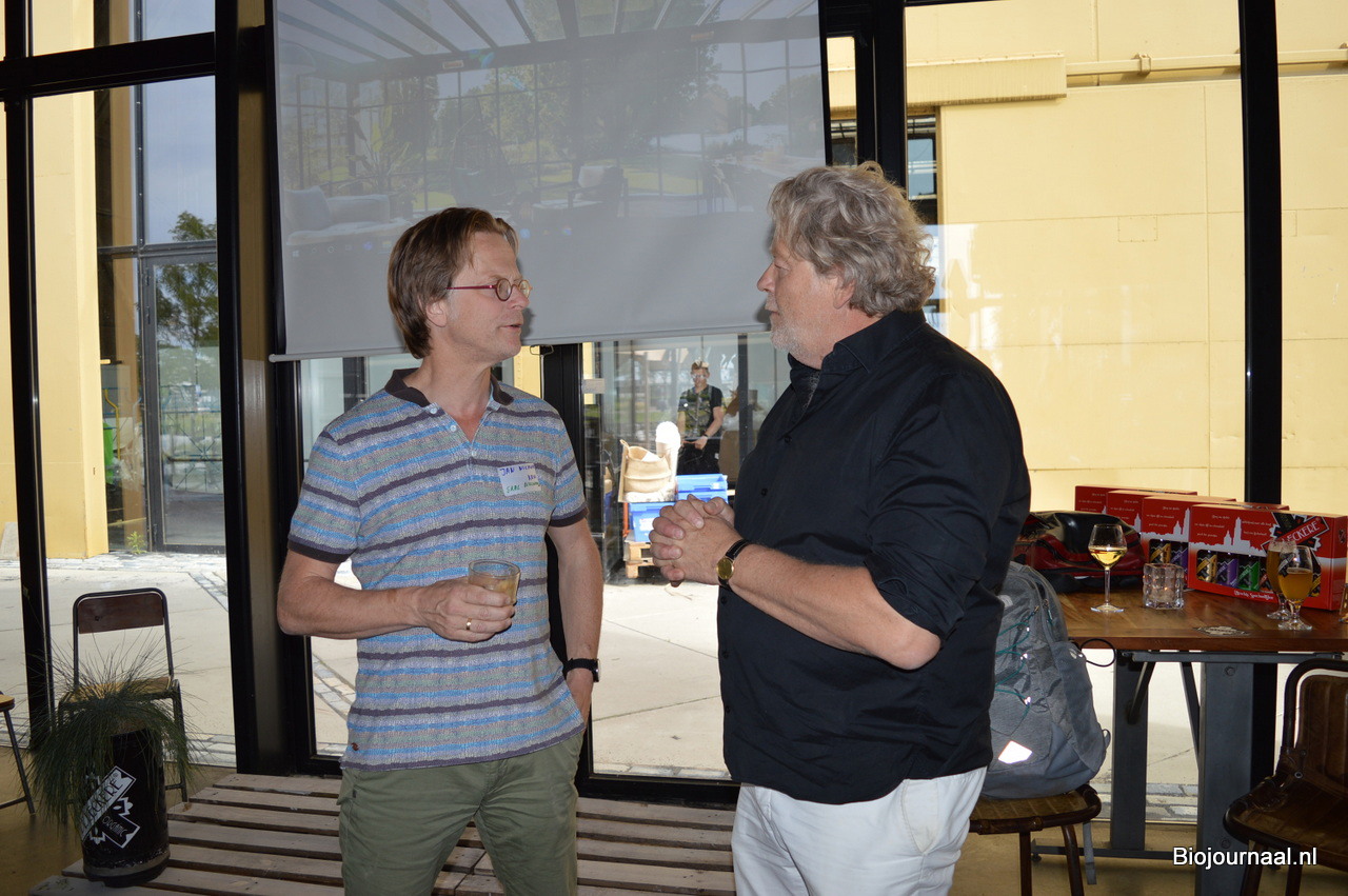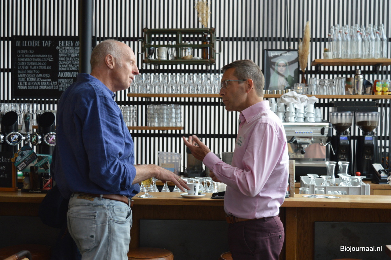 Bert van Ruitenbeek van Stichting Demeter aan de bar in gesprek met Dennis van der Heijden van De Almershof.