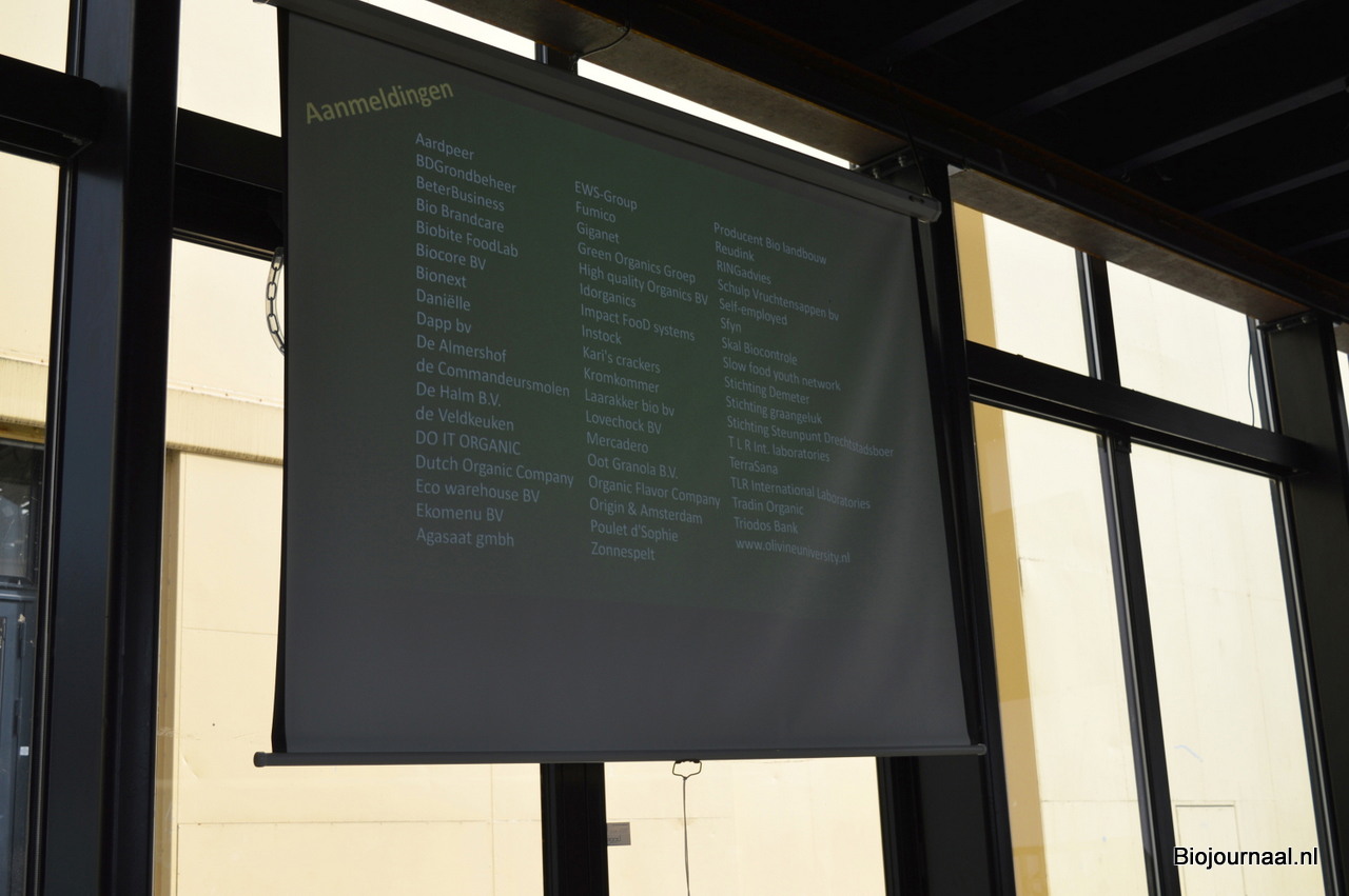 Een overzicht van de bedrijven waarvoor de aanwezigen werkzaam zijn. Thomas: "Een aantal van hen zijn er toch niet bij, die kunnen het allemaal weer teruglezen in Biojournaal."