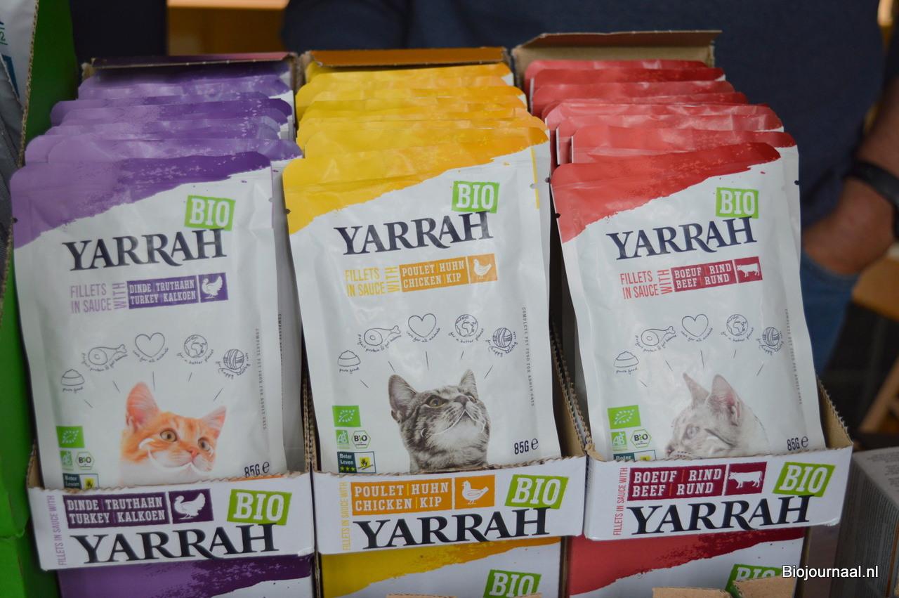 Het nieuwste product van Yarrah zijn deze pouches met kattenvoer. "Ideaal, je scheurt ze heel makkelijk open."