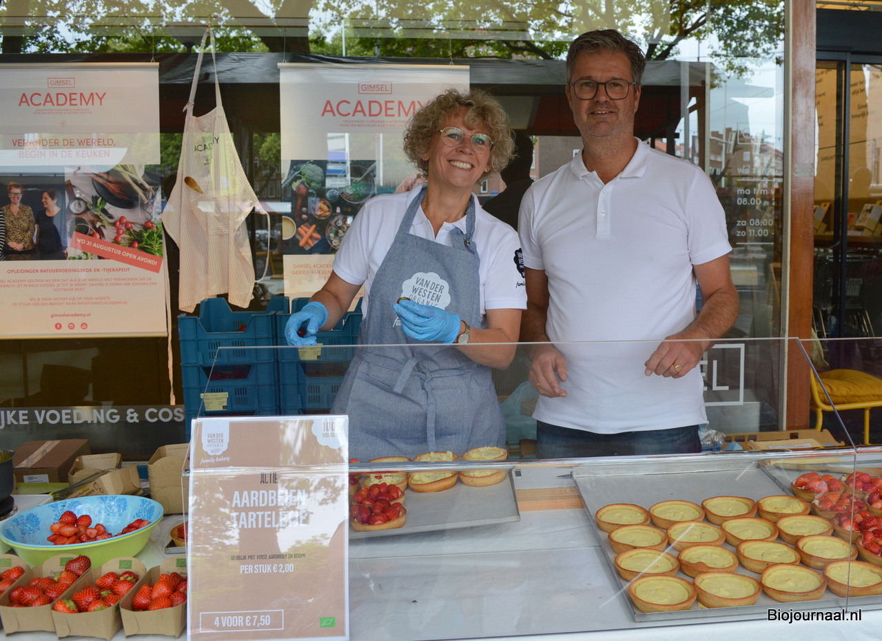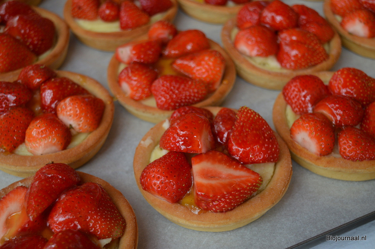 Annette en Peter Schraverus maakten de aardbeien tarteletjes klaar bij Van der Westen Organic, family bakery.