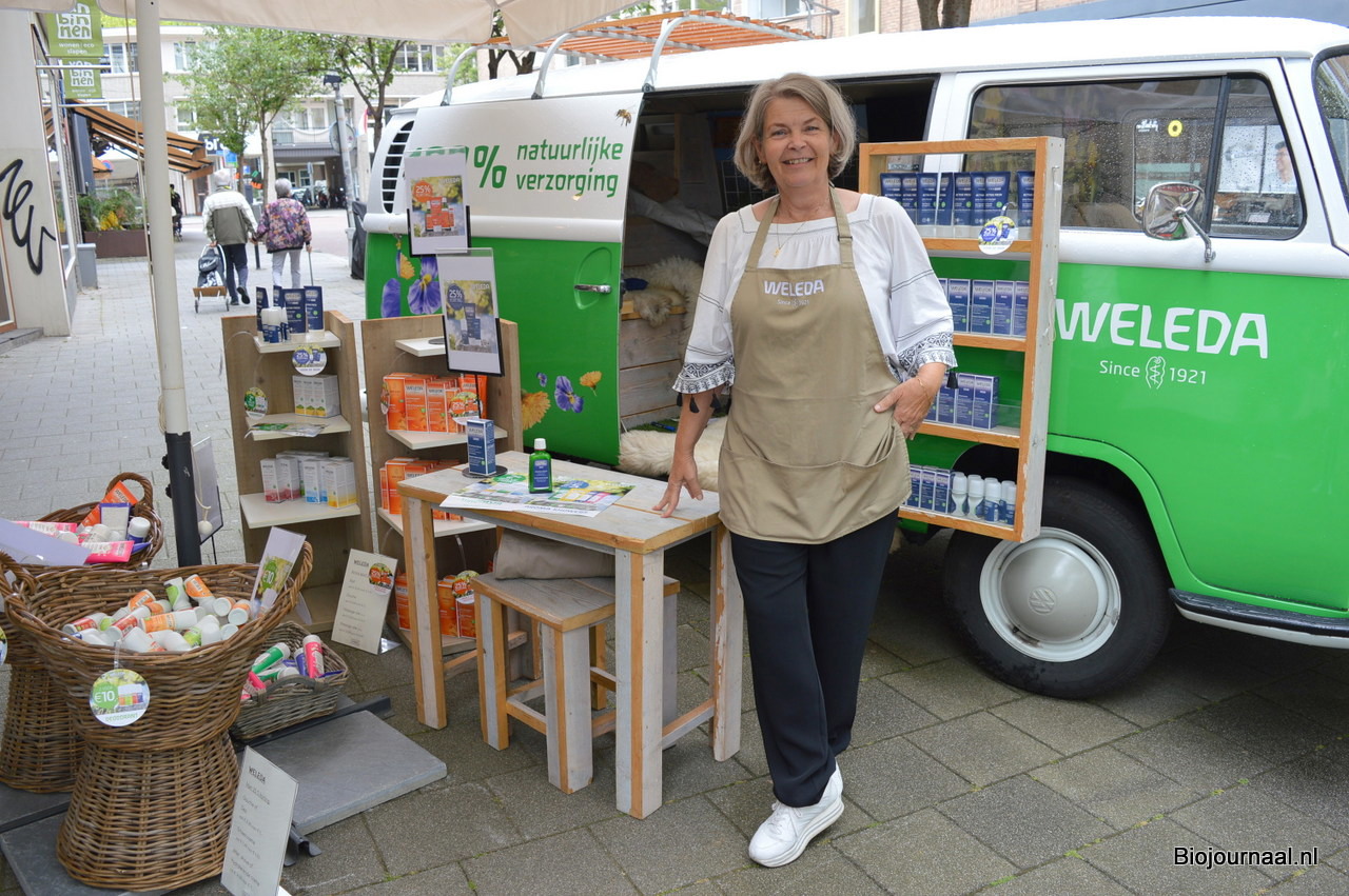 Anita Kamerbeek bij de Weleda-bus.