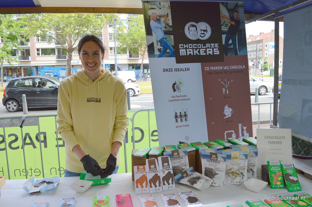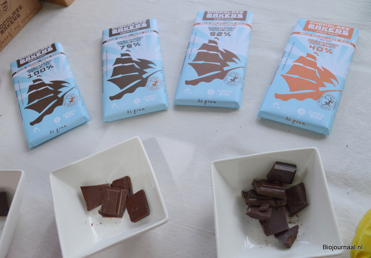 De nieuwste repen kregen uiteraard ook een plekje in de kraam. Er zijn twee nieuwe repen, gemaakt van cacaobonen die met het zeilschip Tres Hombres geleverd worden. Nieuw zijn een donkere melk reep met 52% cacao, koffie en cacaonibs en een 100% pure reep.