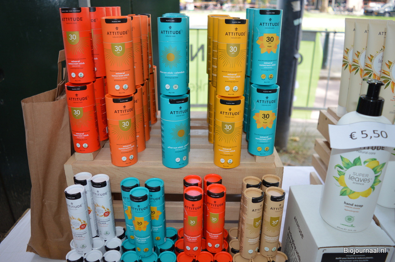 Eén van de nieuwkomers bij GreenHub: sticks met plasticvrije minerale zonnebrand van Attitude.
