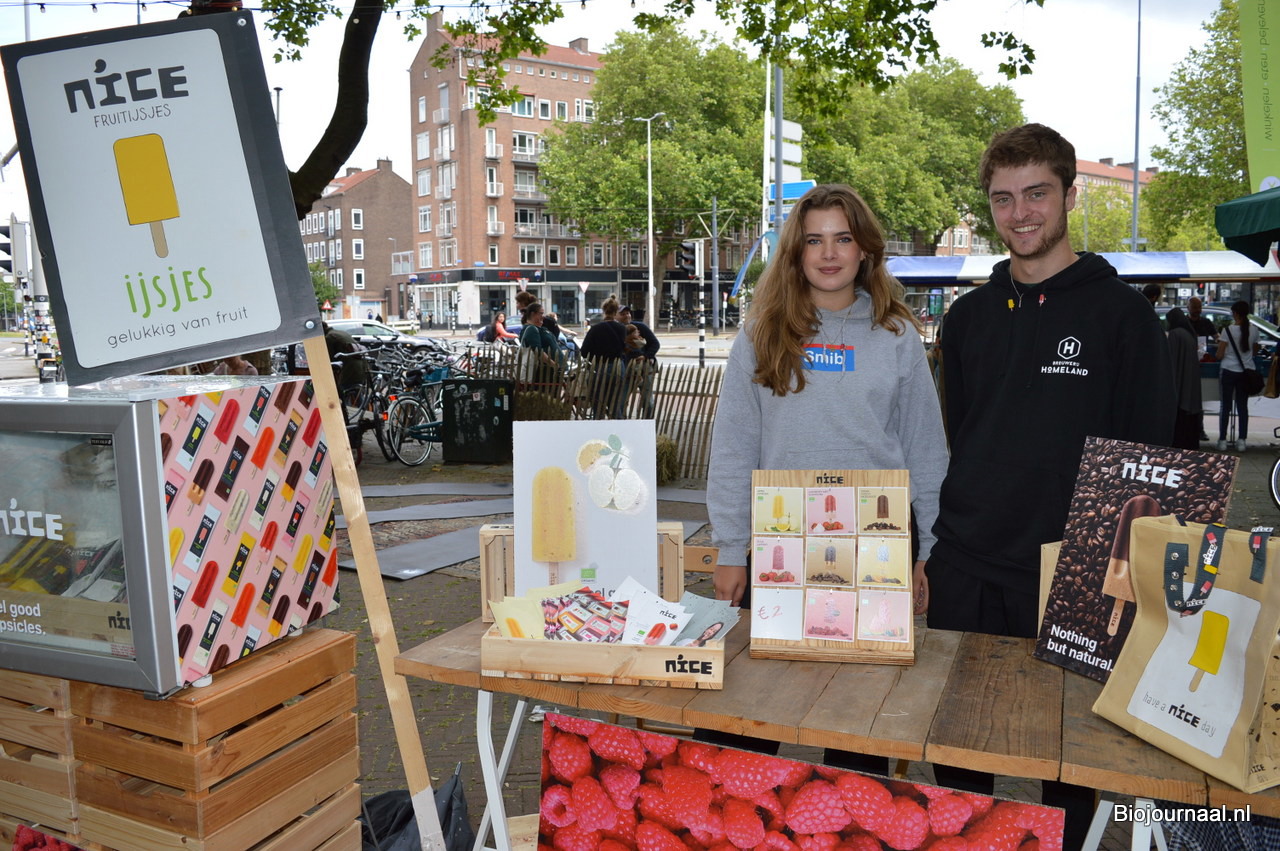 Eva Weerman (dochter van Nice-oprichter Nina Weerman) en Joppe Blankesteijn verkochten ijs van Nice.