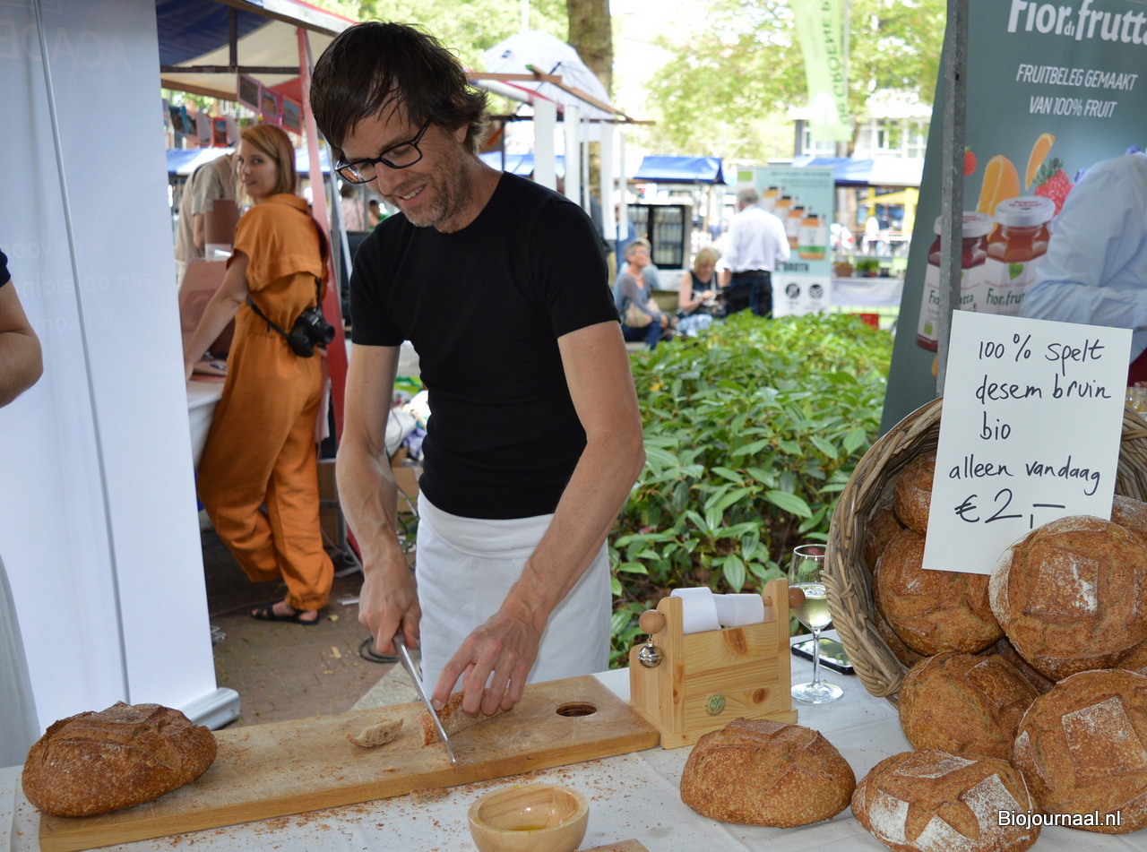 vanmenno in hoogsteigen persoon: Menno 't Hoen snijdt één van de rustieke broden - 100% spelt desembruin.