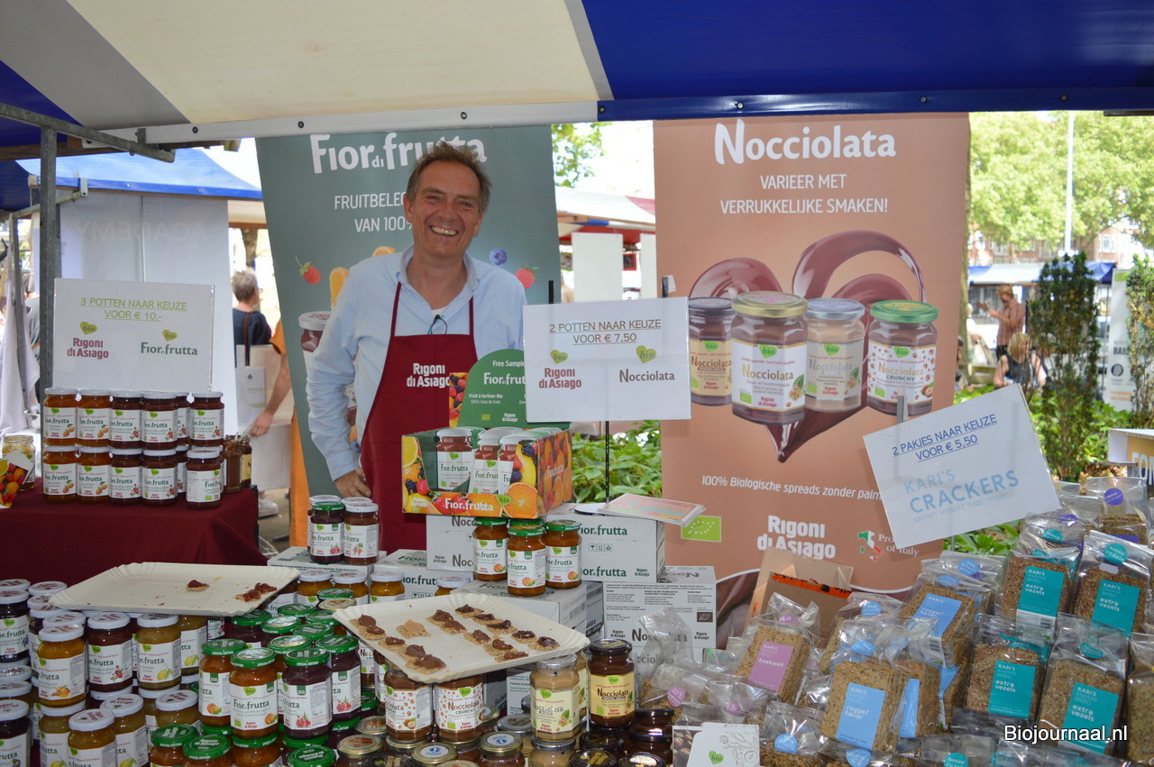 Ton Severrien van GreenSprout. Hij vulde zijn kraam met de producten van Nocciolata, FiordiFrutta en Kari's Crackers.
