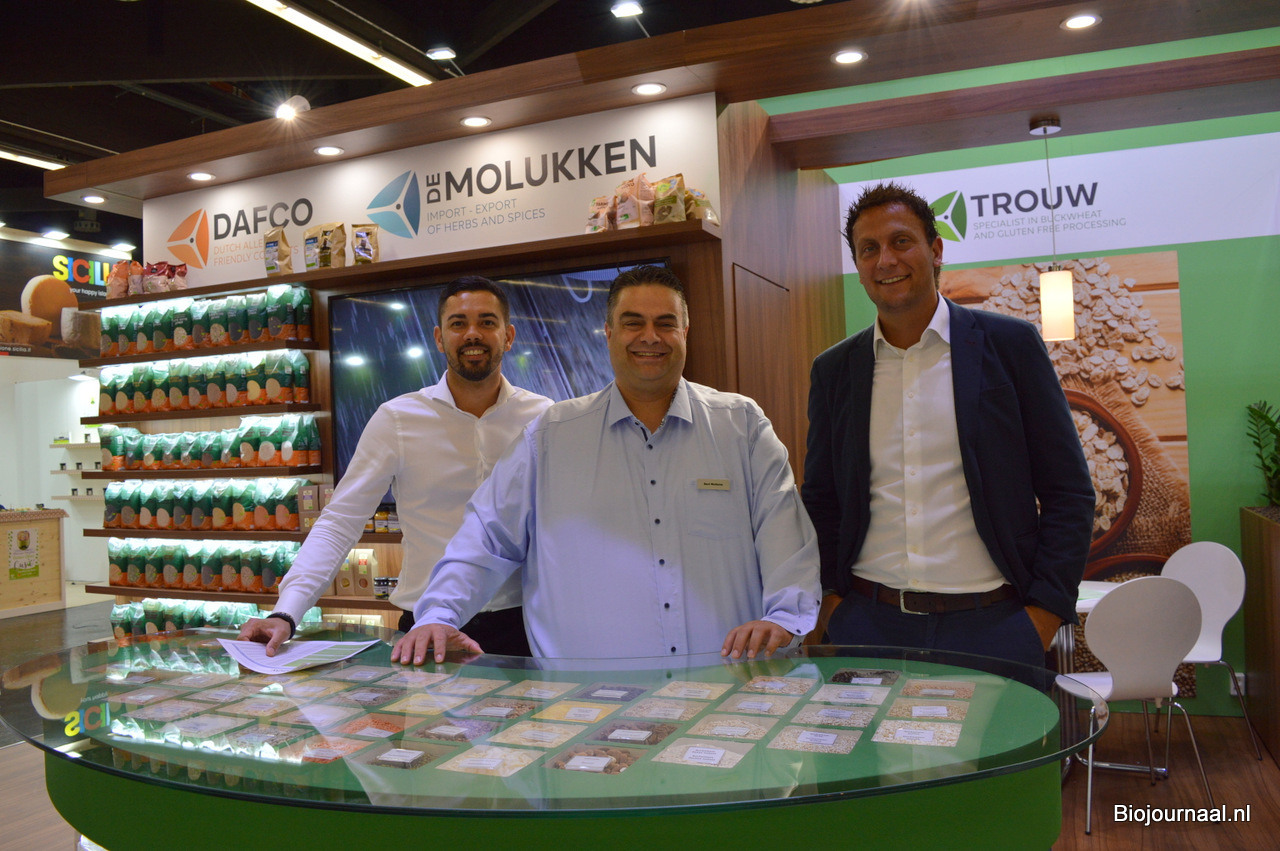 Nenco Food Group presenteerde de drie handelsmaatschappijen in 1 stand: Trouw B.V., DAFCO en De Molukken. Glenn Arrindell, Bart Wullems en Gino Snoodijk. Bart: "De beurs is beter dan we vooraf dachten. We hebben veel bestaande klanten kunnen ontmoeten hier en ook zeker nieuwe contacten gelegd. Het leuke is dat de mensen nu extra veel tijd hebben om een gesprek aan te gaan."