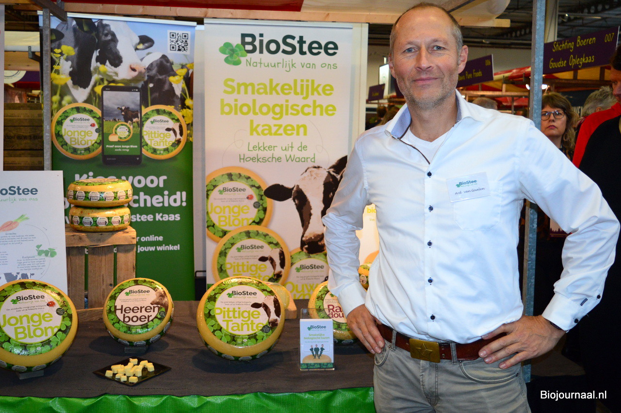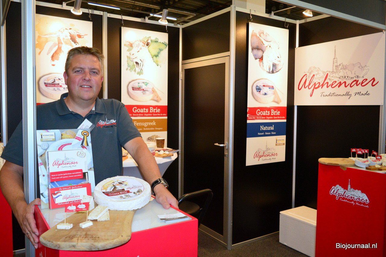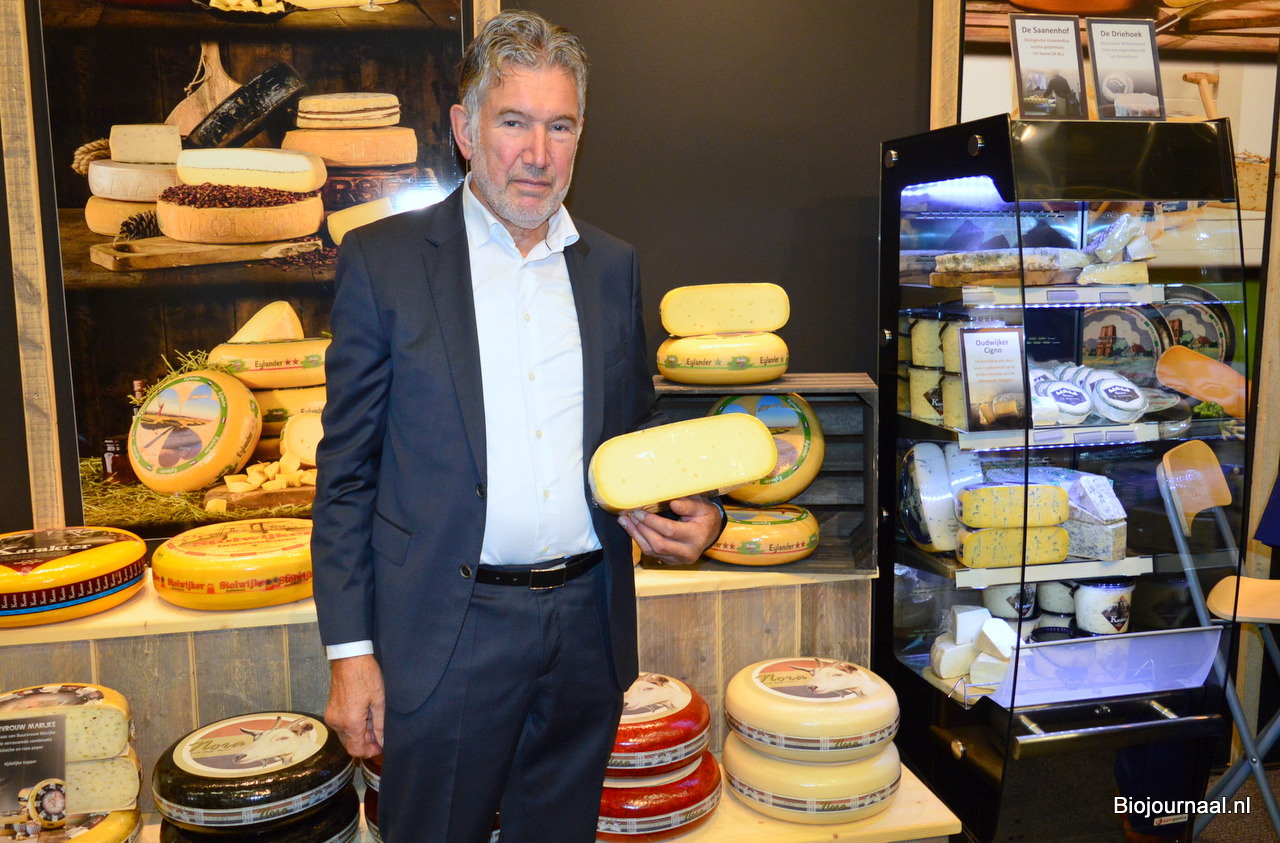 Kees Remijn van het gelijknamig bedrijf met 1 van hun bio-kazen.