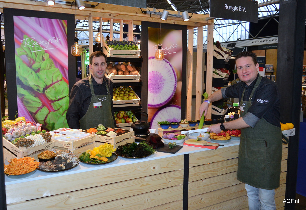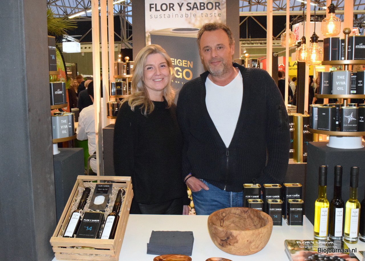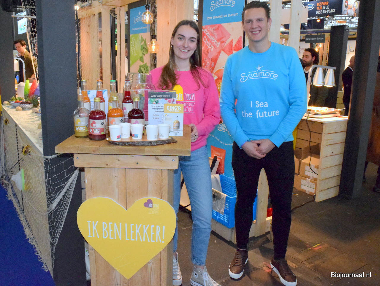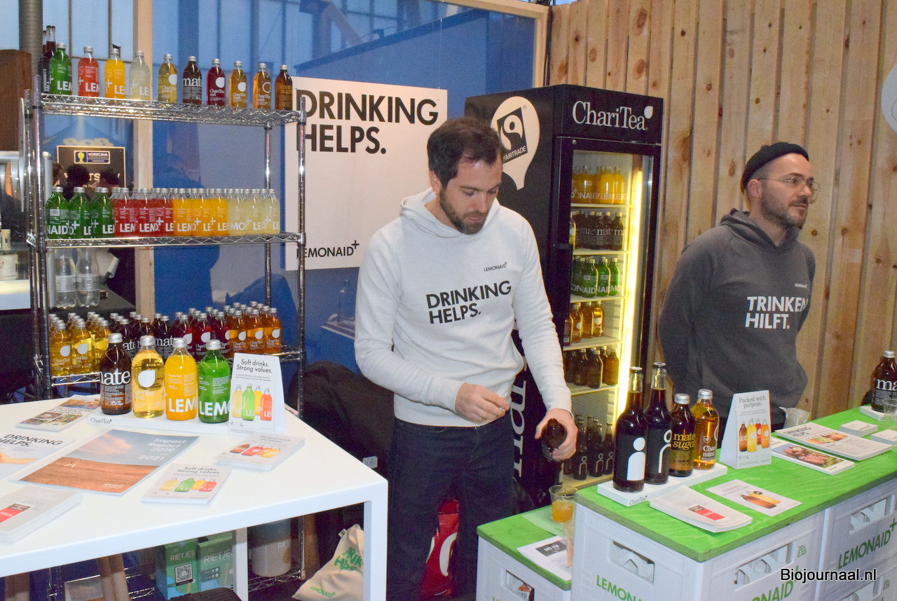 Soufiane Bellil en collega met voor hun het Bio-assortiment wat ze mee hadden op de Horecava.