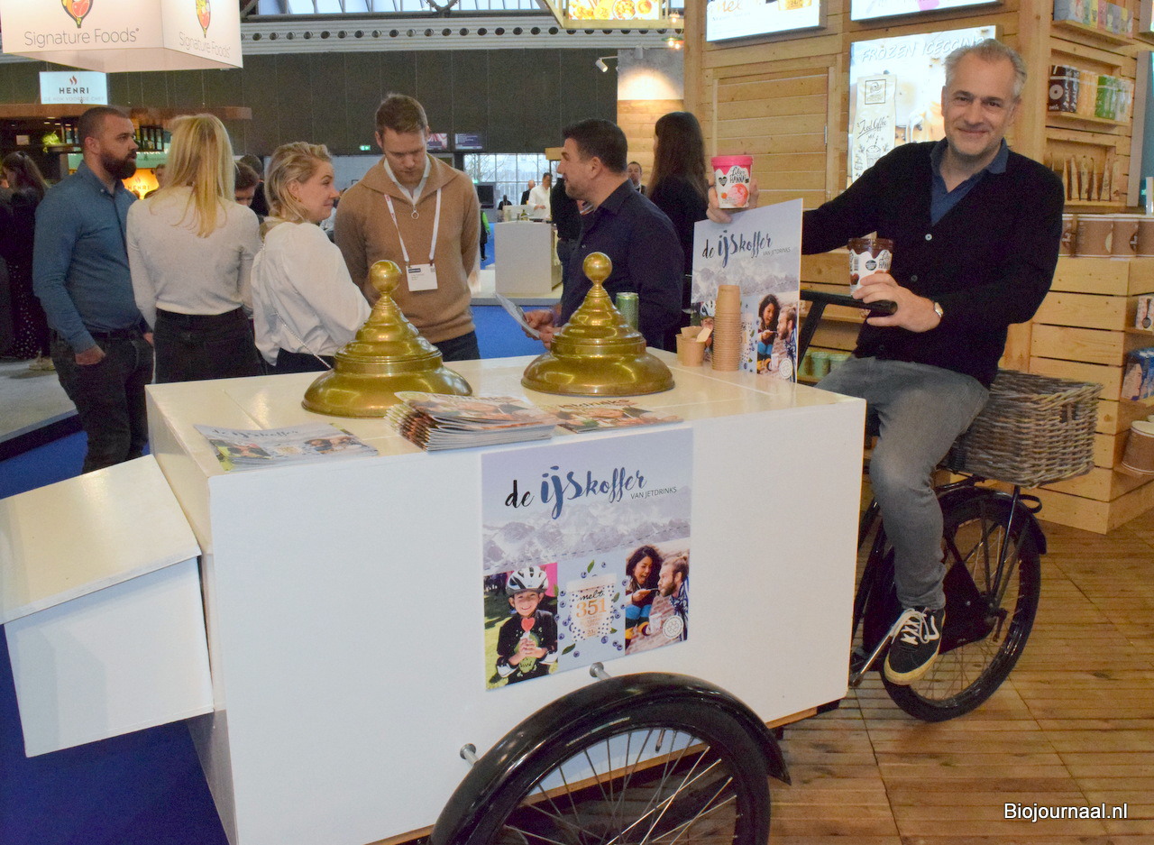 Dmitri Peters op de ijskar, vroeger zat hij ook al op de ijskar dus de cirkel is rond. Nu verkoopt hij biologisch ijs onder het merk: "de ijskoffer"
