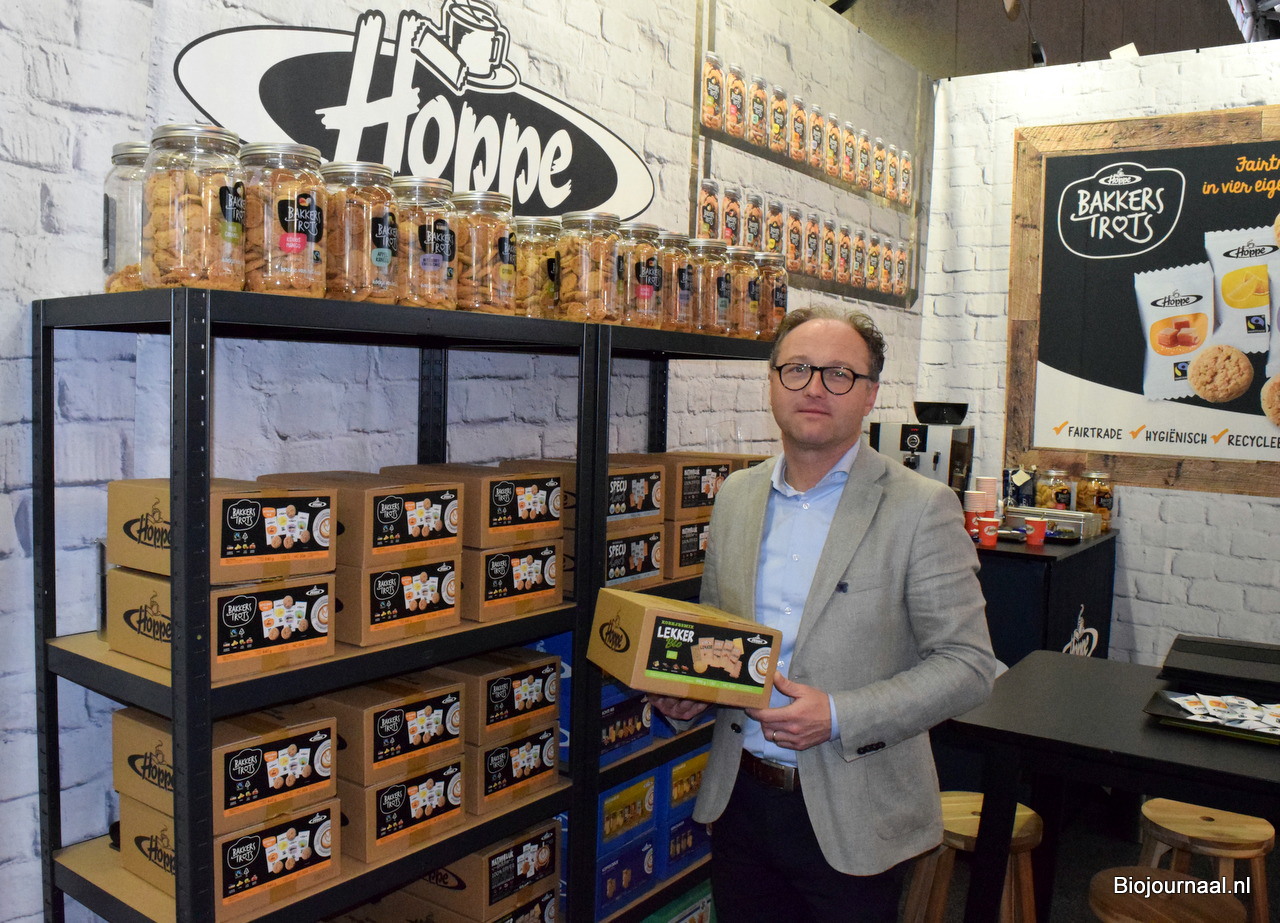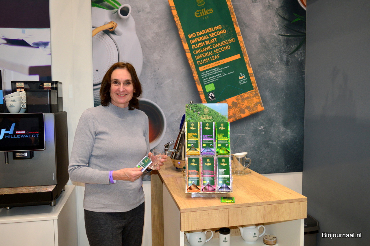 Mariet Ter Veld van J.J. Darboven. Nieuwe lijn 'Eilles tee' Alle verpakkingen composteerbaar en alle merken hebben het Fairtrade keurmerk en Skal keurmerk.