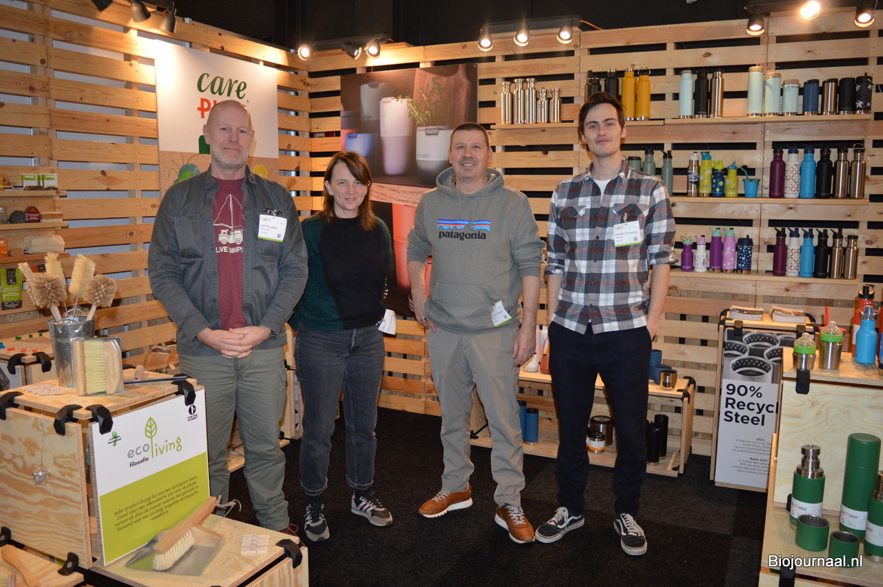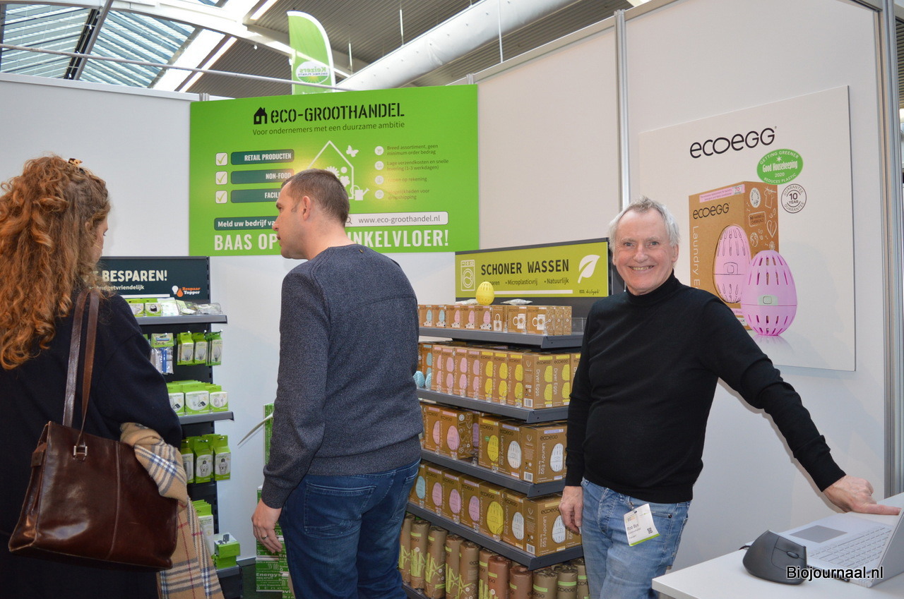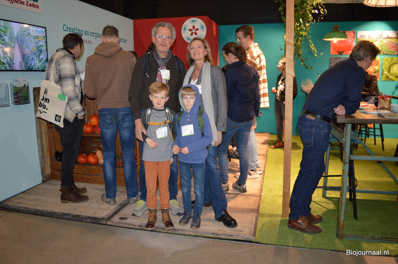 Ekoplaza-winkelier Jan Peter Oosterloo bracht zijn vrouw en zoon (en vriendje) mee naar de beurs.