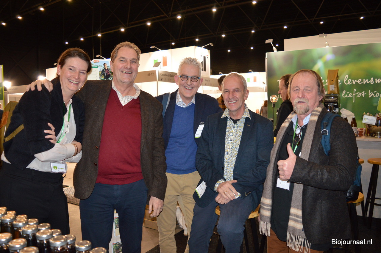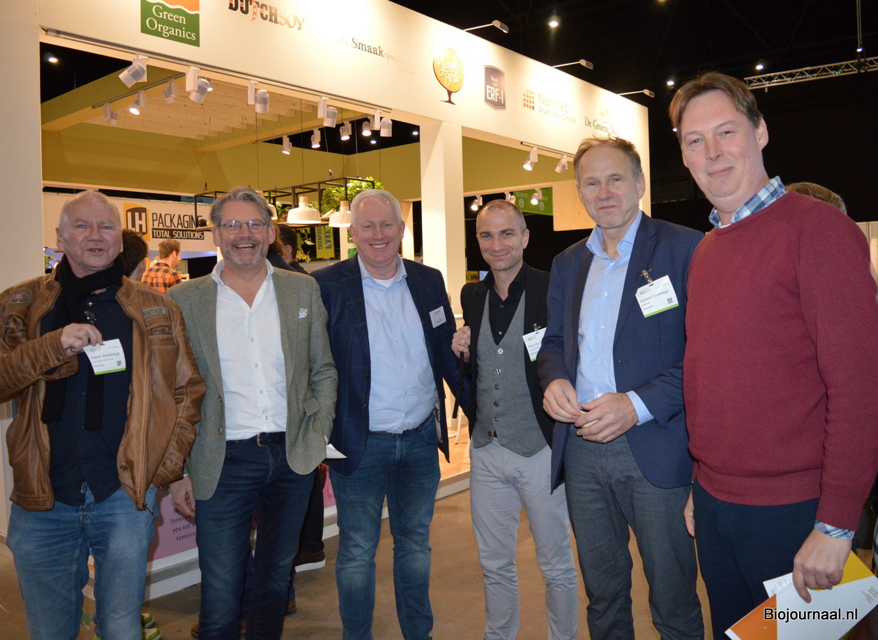 Een onderonsje tussen Hans Versteegh (NOW Organic), Pieter Dirven (De Smaakspecialist), Allard Bakker (De Groene Weg), Paul van Schijndel (Rhumveld Winter & Konijn), Gerard Versteegh (Tradin Organic) en Karst Kooistra (Tradin Organic en Landgoed Bleijendijk).