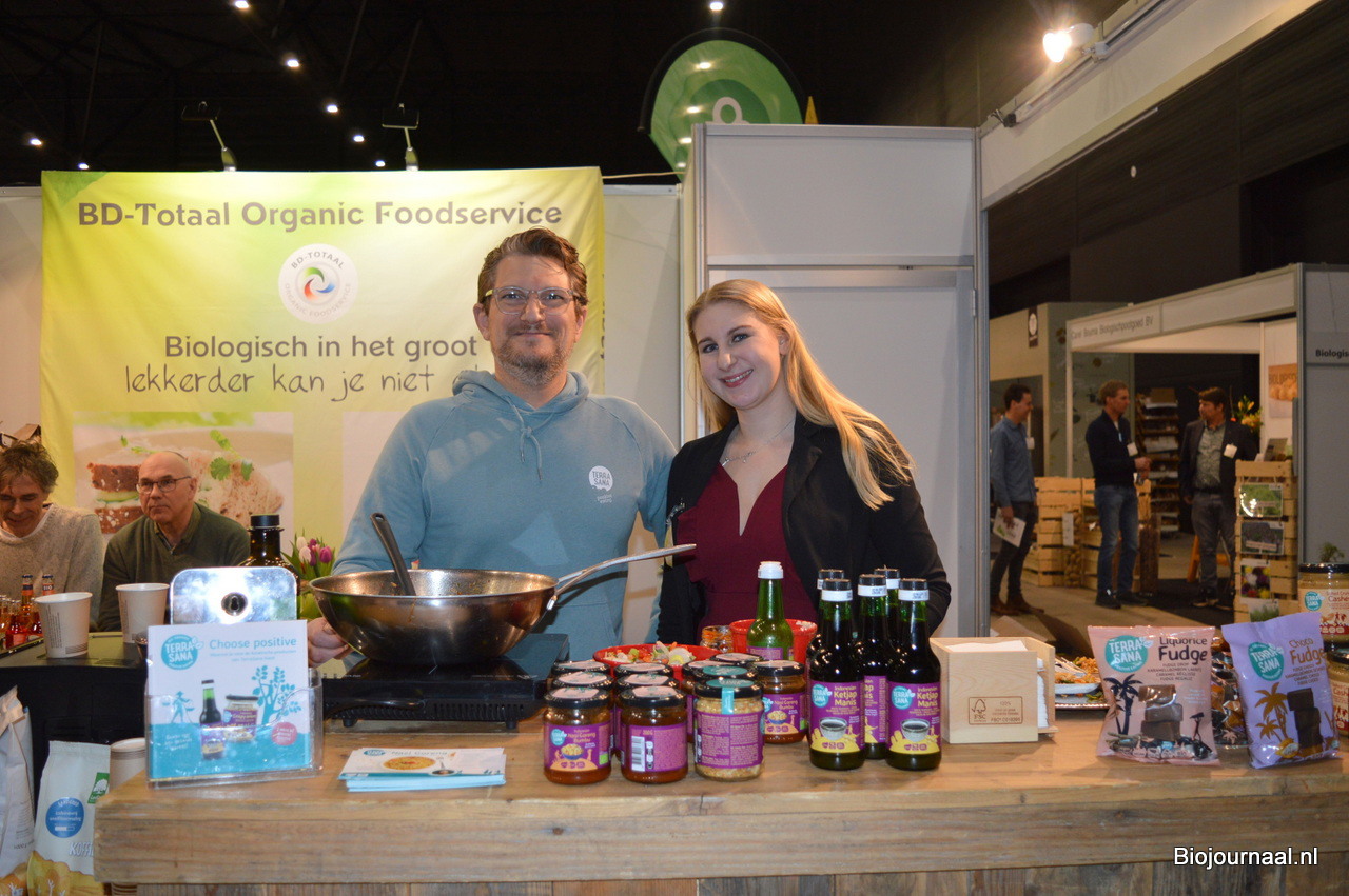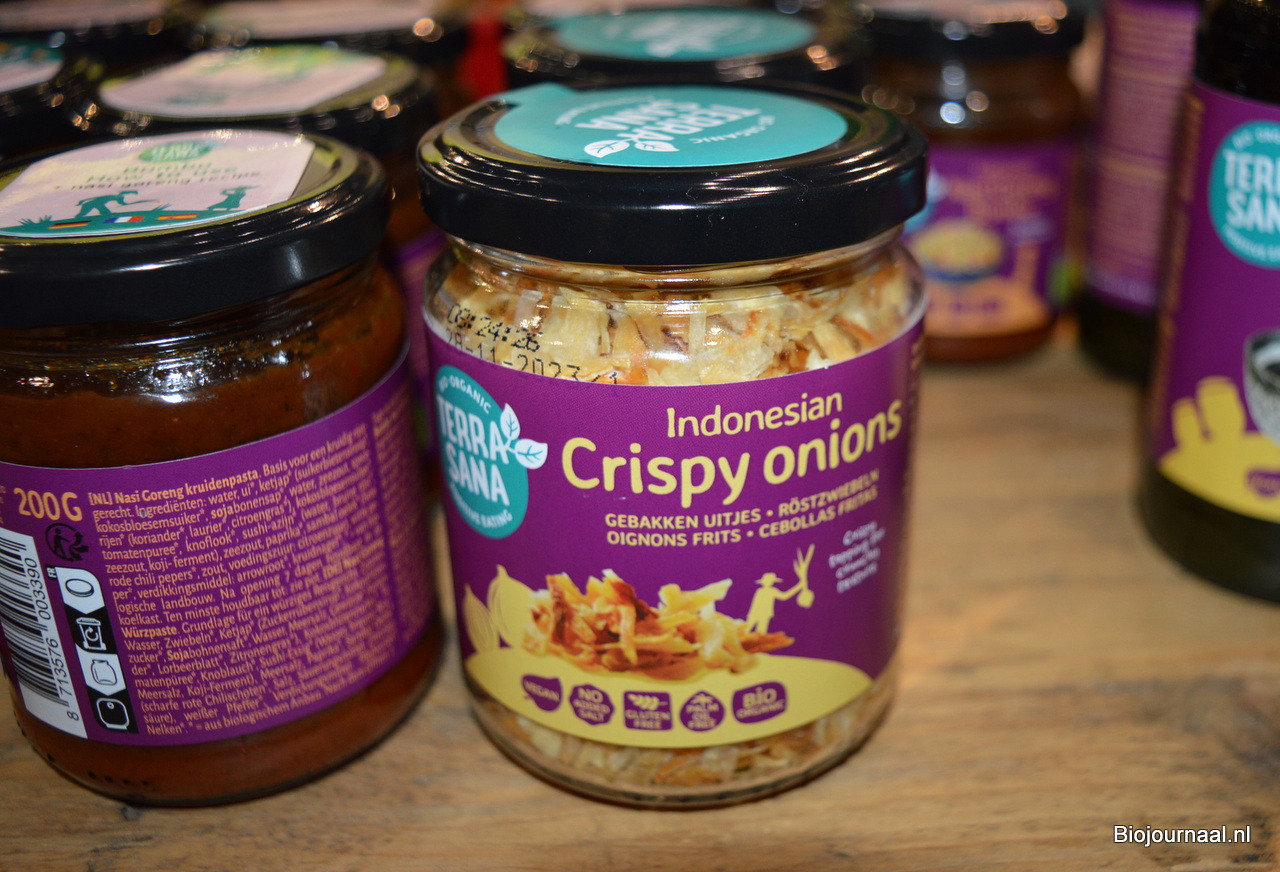 Sebastiaan Krouwel en Laura van Lissum lieten bij TerraSana proeven van nasi met hun Indonesische Crispy Onions.