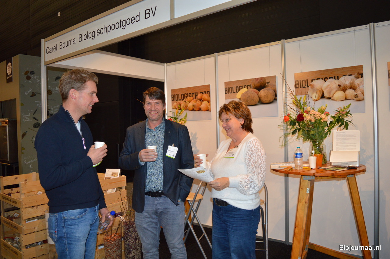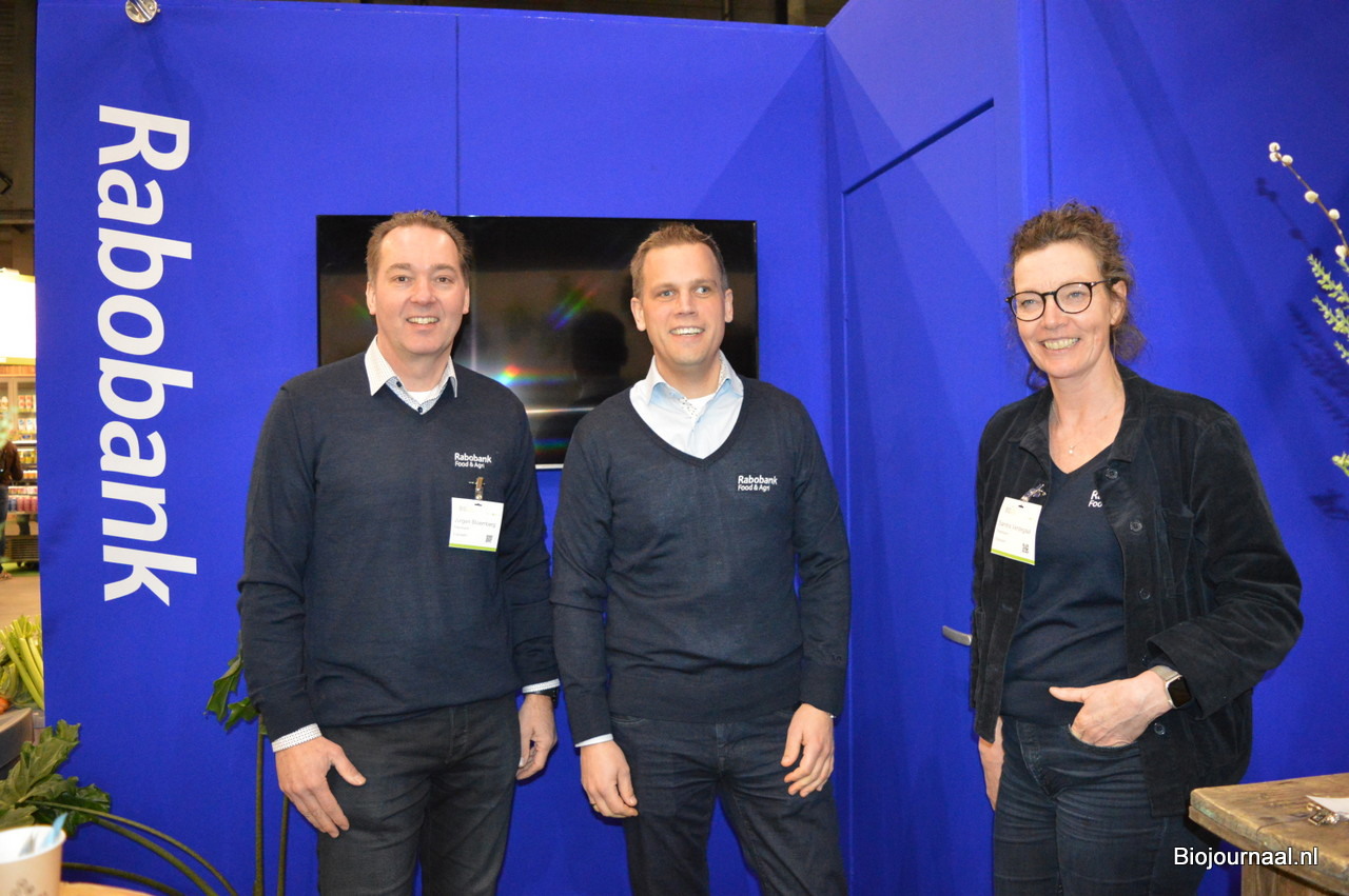Bij Rabobank: Jurgen Bloemberg, Mart Bloemendal en Sandra Verdegaal. Jurgen: "Voor de bio-akkerbouw zijn er best wat zorgen over de afzetkant."
