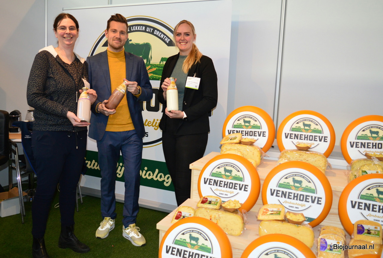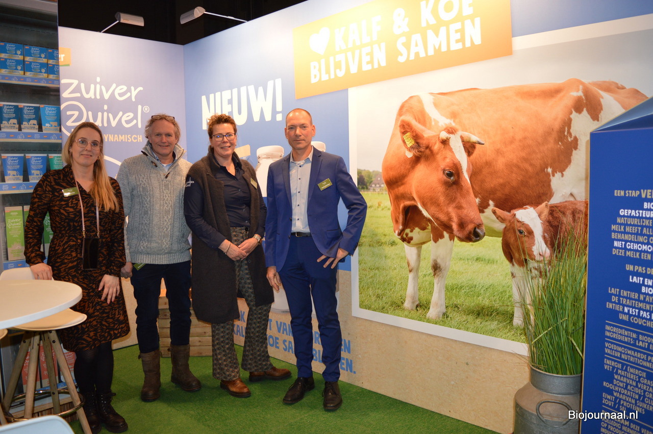Bij Weerribben Zuivel was onder meer extra aandacht voor kalf bij koe melk, waarmee Zuiver Zuivel in de top 5 van de Bioproductverkiezing terechtkwam. Myrthe Bijl, Klaas de Lange, Agnes Jongman en Edwin Crombags.