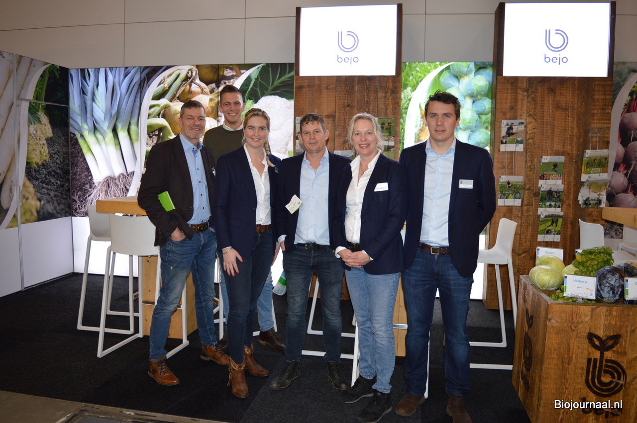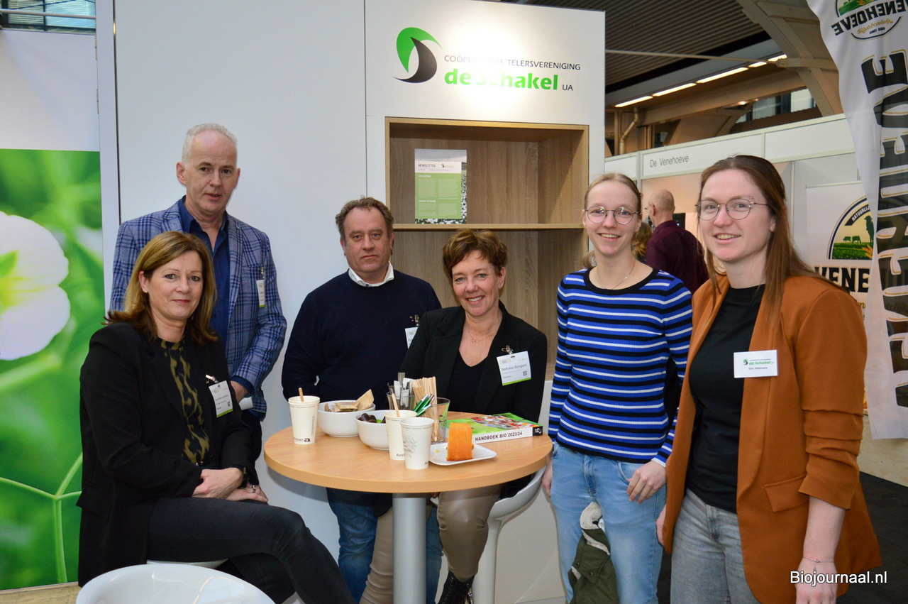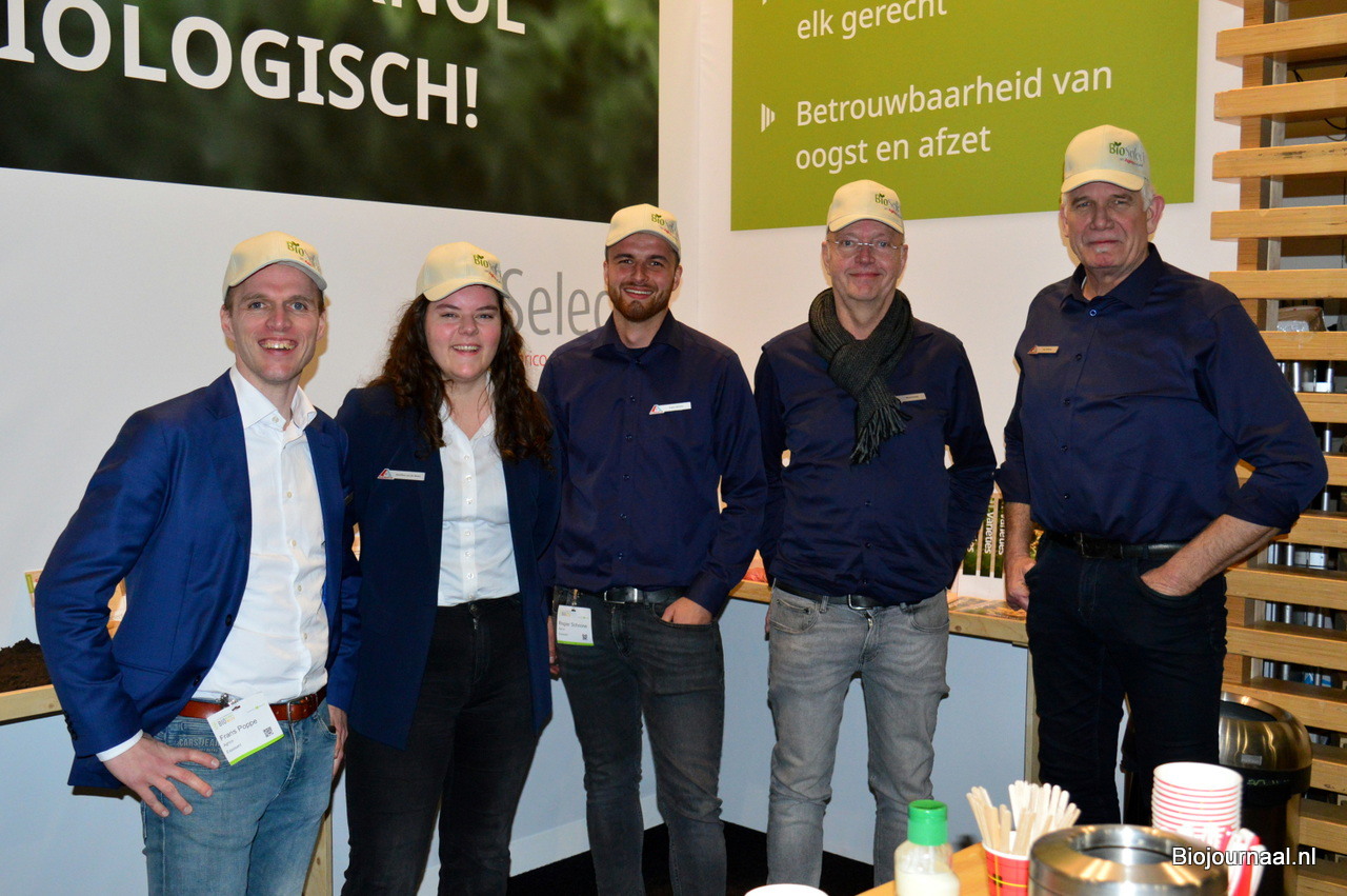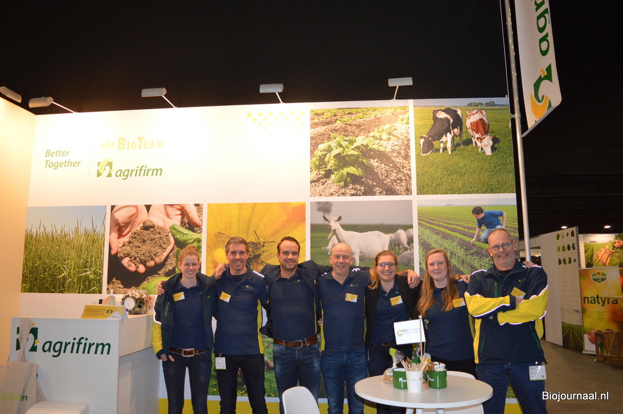 Aan het einde van de eerste beursdag had Agrifirm Team Bio tijd voor een groepsfoto. Met: Arina Hotting, Toon Verschuren, Christian Wolbrink, Willy Vloet, Sanne van den Brink, Marjan Bierema en Erwin Ros.
