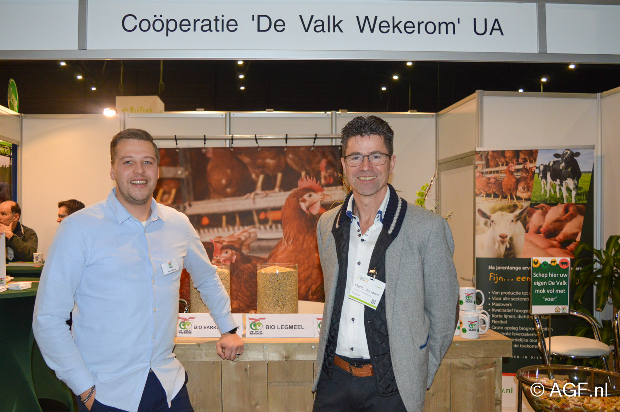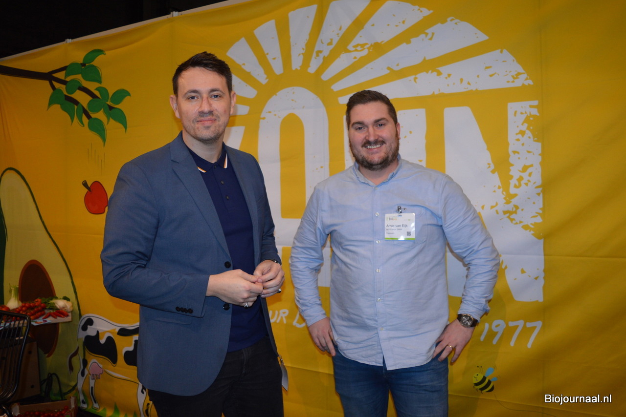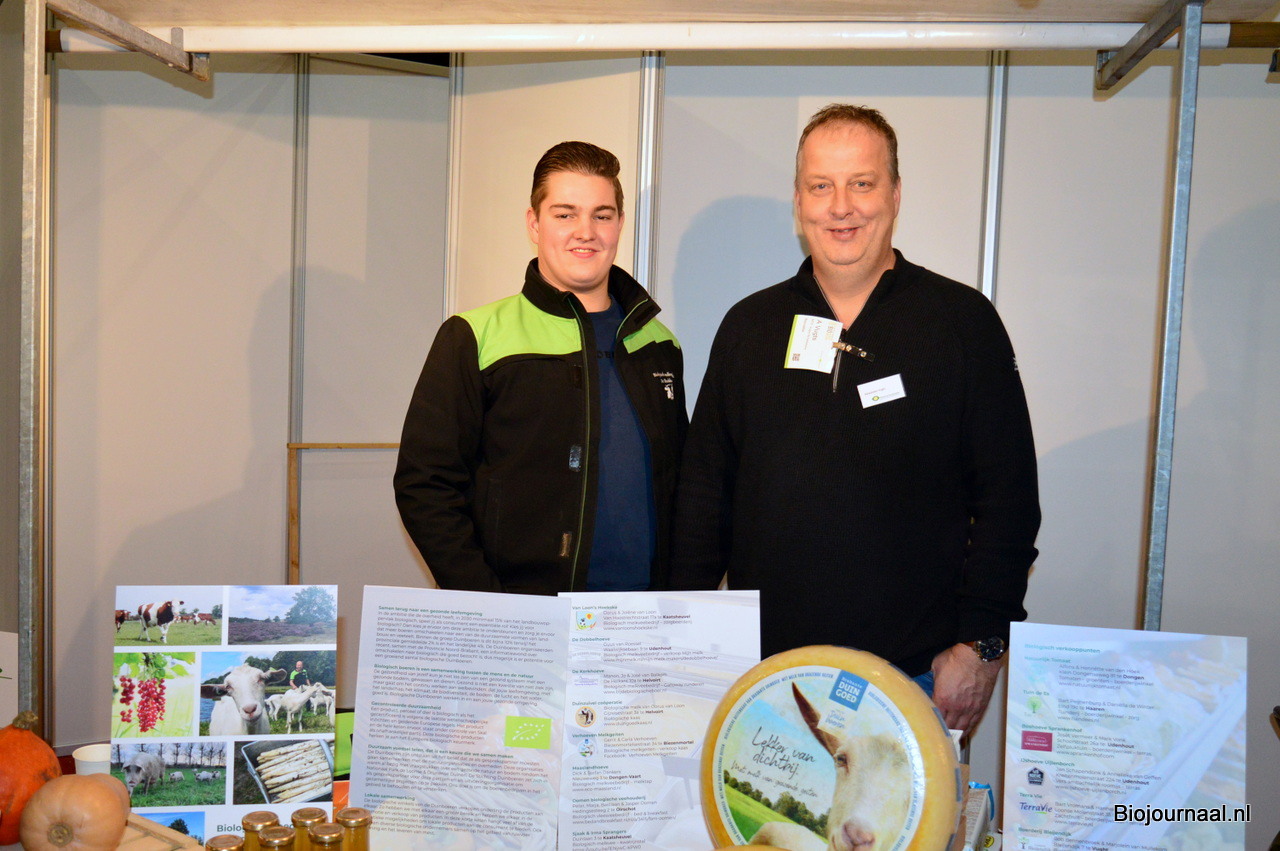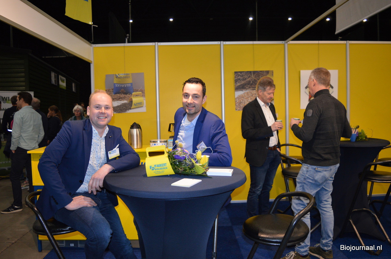 Geoffrey Harreman en Arnie van Eijk stonden voor de bezoekers klaar bij Bio-Center ZANN. Geoffrey: "We zijn heel blij met de nieuwe uitstraling van onze stand."