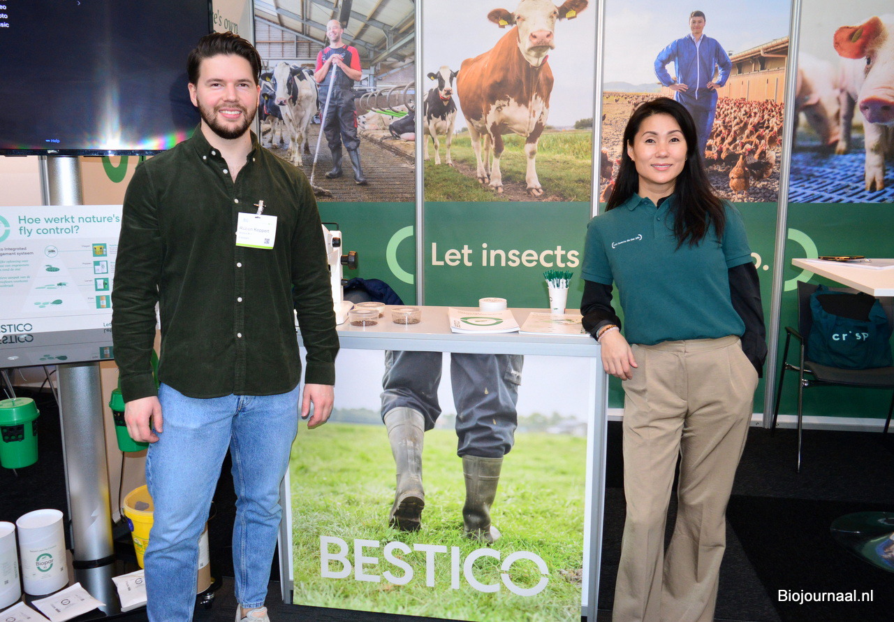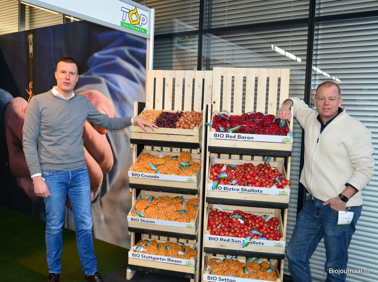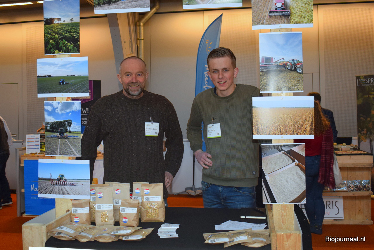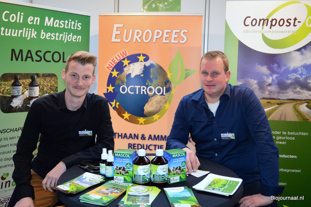 Geoffrey Harreman en Arnie van Eijk stonden voor de bezoekers klaar bij Bio-Center ZANN. Geoffrey: "We zijn heel blij met de nieuwe uitstraling van onze stand."
