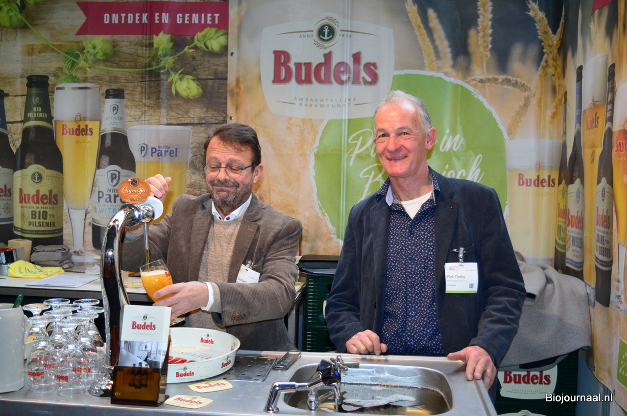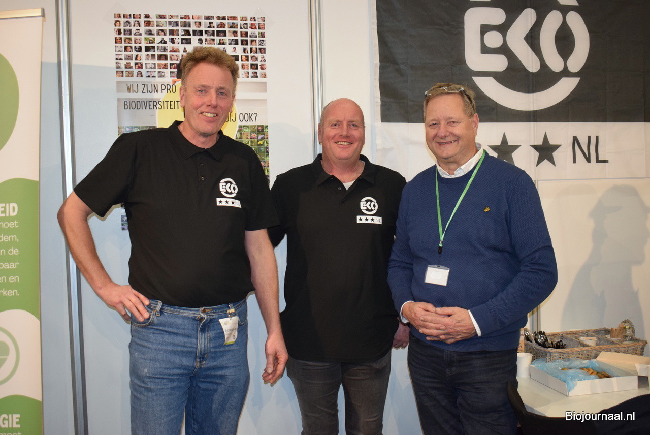 Rechts Rob Bos van Eco-Groothandel. In het midden collega Rogier Jongman.