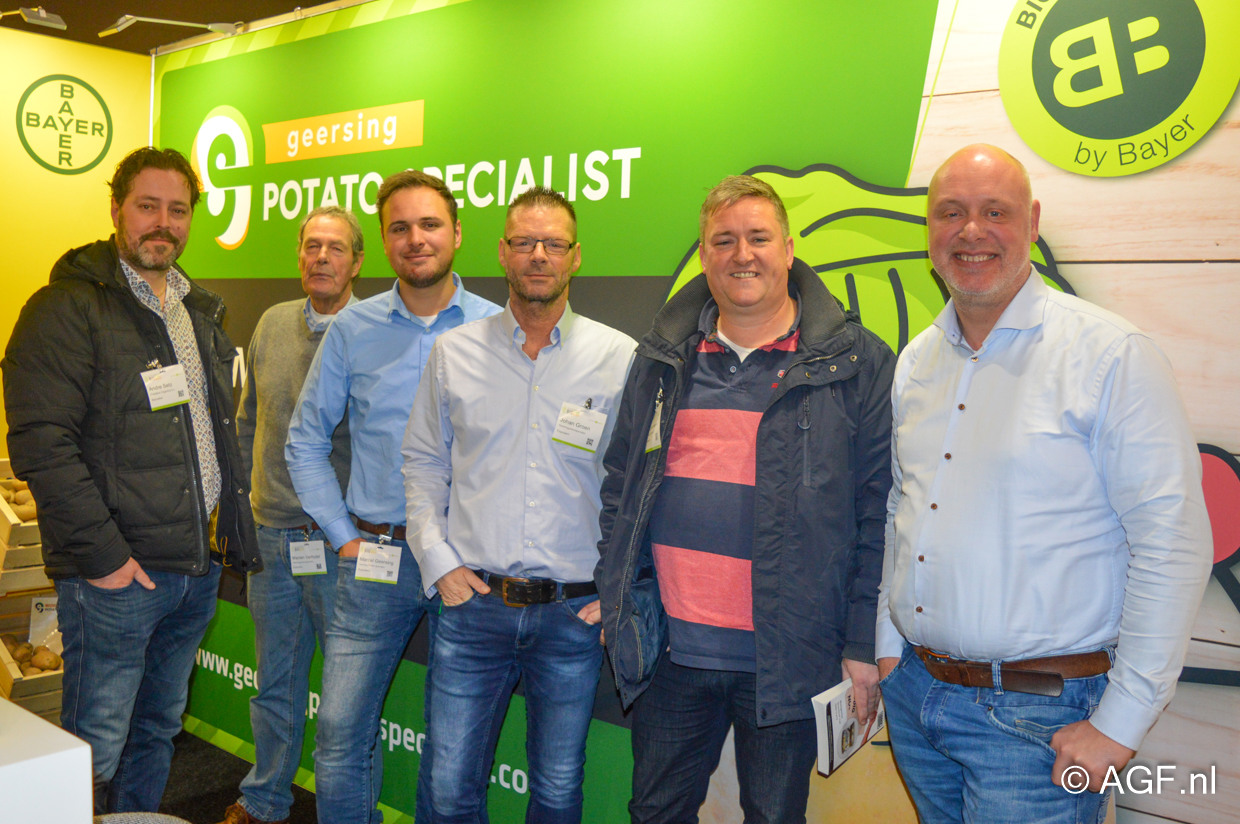 Andre Setz van Freeland Organics met Marien Verhulst, Marcel Geersing en Johan Groen van Geersing Potato Specialist, Jan-Pieter Wiepkema van Freeland Organics en Jan-Eric Geersing van Geersing Potato Specialist.