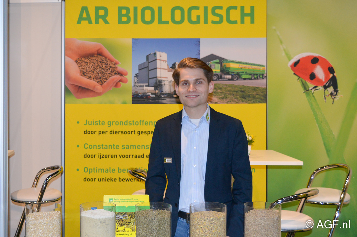 Jeffrey de Rooij van AgruniekRijnvallei (AR) Biologisch. Zij produceren en leveren biologische voeders: van legpluimveevoer tot zeugenvoer en van lammerenkorrel tot melkveebrok.