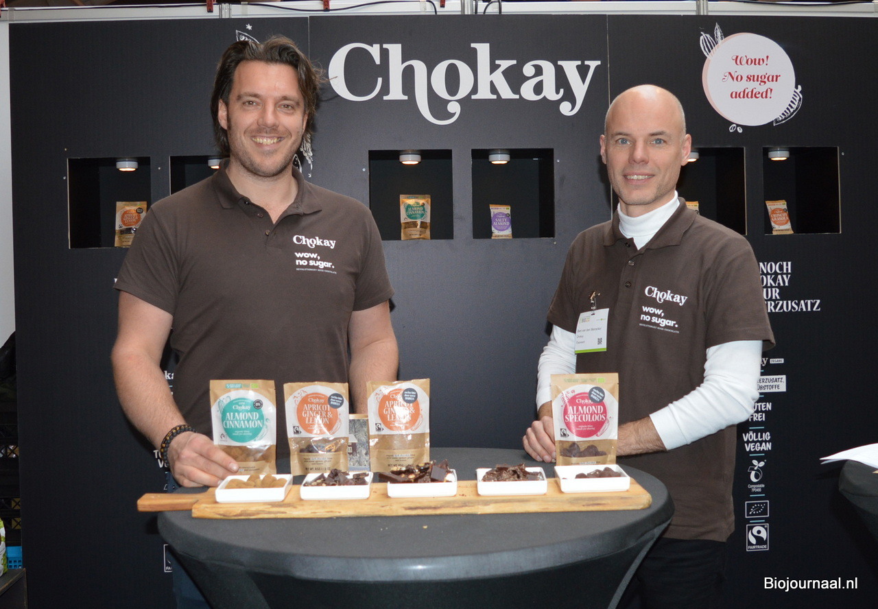 Lars Jacobs en Bart van den Meiracker lieten volop suikervrije chocolade proeven bij Chokay. Lars: "We hebben al goede gesprekken gehad met winkeliers. De meeste winkeliers zijn positief verrast over het feit dat onze producten zonder suiker geproduceerd worden."