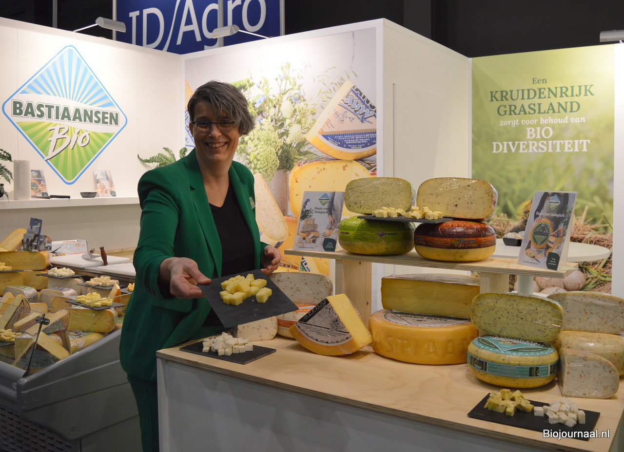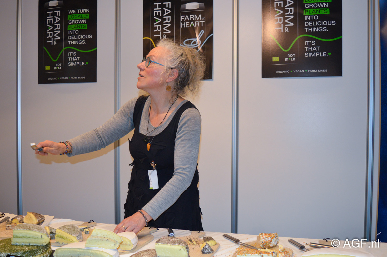 Marja Bastiaansen liet bij Bastiaansen Bio via Vandersterre proeven van de nieuwe kazen. Op het plankje de Grande Rouge. Rechts de Chimichurri en Geitenkaas met tuinkruiden. En er zijn ook plakken Bastiaansen-kaas van Demeterkwaliteit beschikbaar.