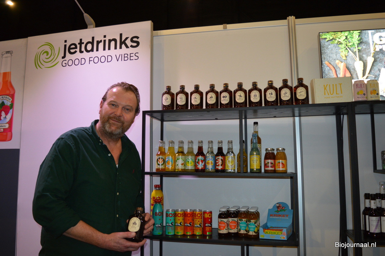 JetDrinks introduceerde op de beurs een nieuw merk in hun aanbod: Bacanha - Sirop Brut (bruine flessen bovenin). "Deze pure siropen vallen heel goed in de smaak", vertelt Jelle Schmidt.