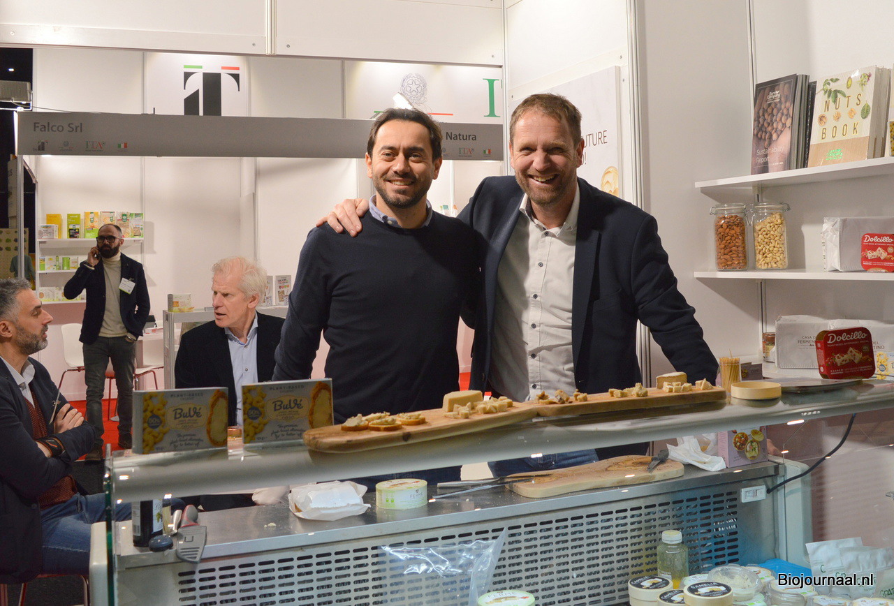 Marco Casadei en Gert-Jan de Groot bij Casa del Fermentino (van Euro Company). Onlangs geïntroduceerd: Dolcillo cashew fermentino met cranberries en pecannoten & BuVé premium, een plantaardig boter alternatief.