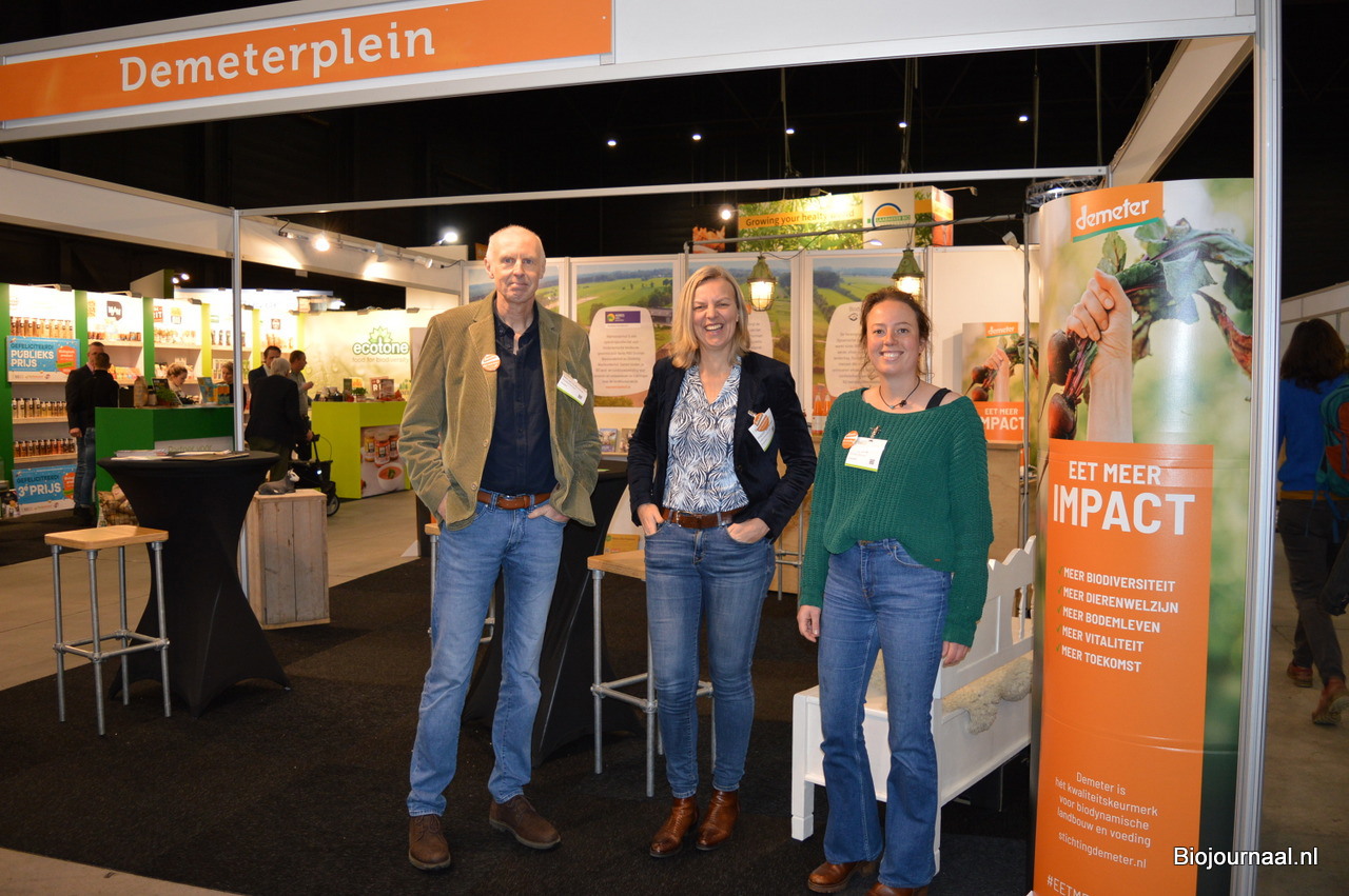 Op het Demeterplein: Bert van Ruitenbeek (Directeur Stichting Demeter), Matty Vink en Marjon Wijdeven. Bert: "Ik ben blij met het Actieplan, maar er moeten echte kaders gezet worden. Denk bijvoorbeeld aan het afschaffen van de BTW of het volledig uitbannen van bestrijdingsmiddelen."