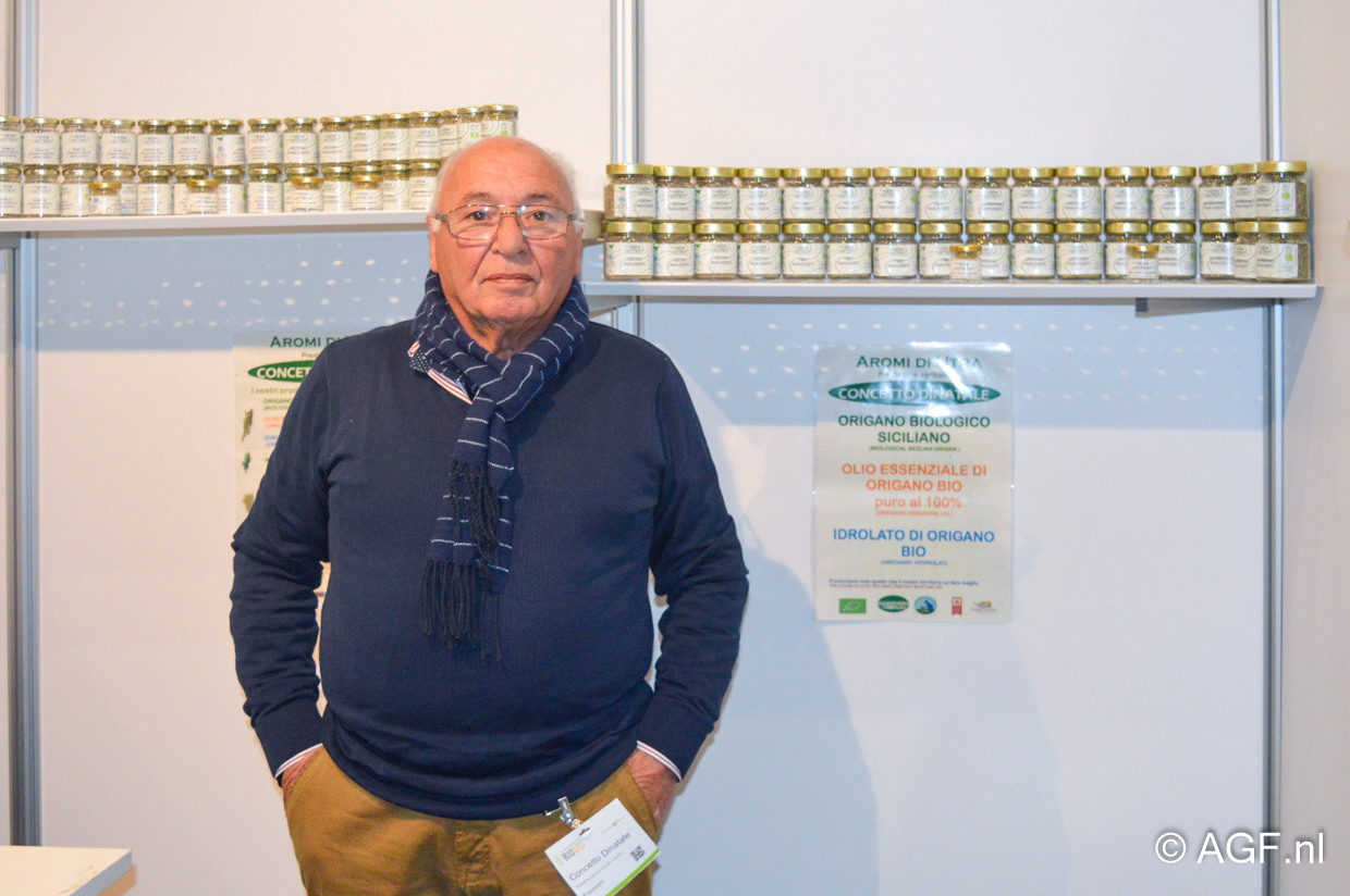 De Italiaan Concetto Dinatale van het gelijknamige bedrijf Concetto Dinatale. Hij kweekt zelf de kruiden op Sicilië en droogt ze daarna.