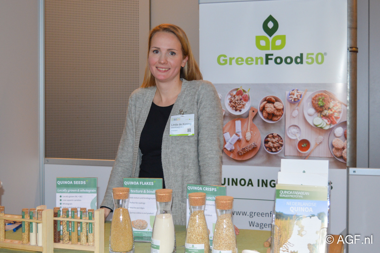 Linda de Koning van GreenFoods 50. Zij produceren eigen Nederlandse quinoa en maken hier ingrediënten van.