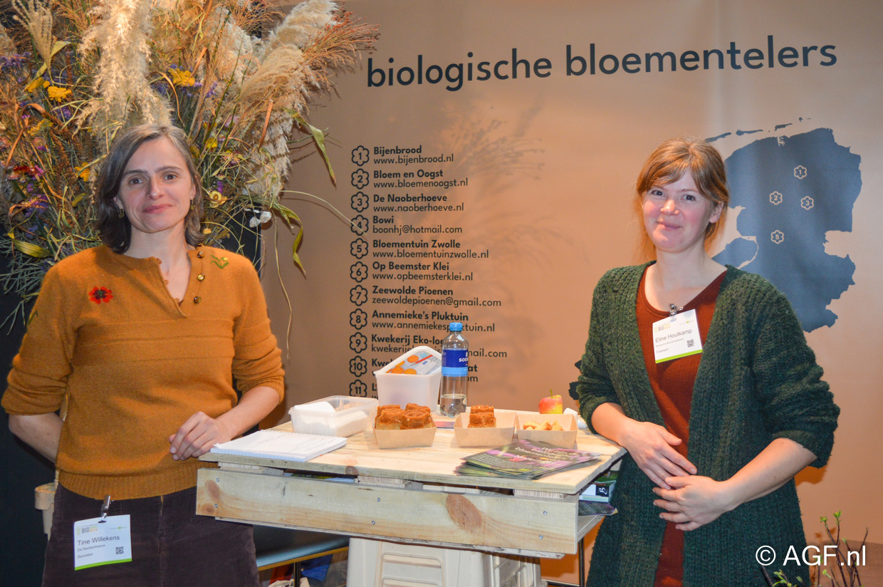 Tine Willekens en Eline Houtkamp vertegenwoordigden de Biologische Bloementelers.