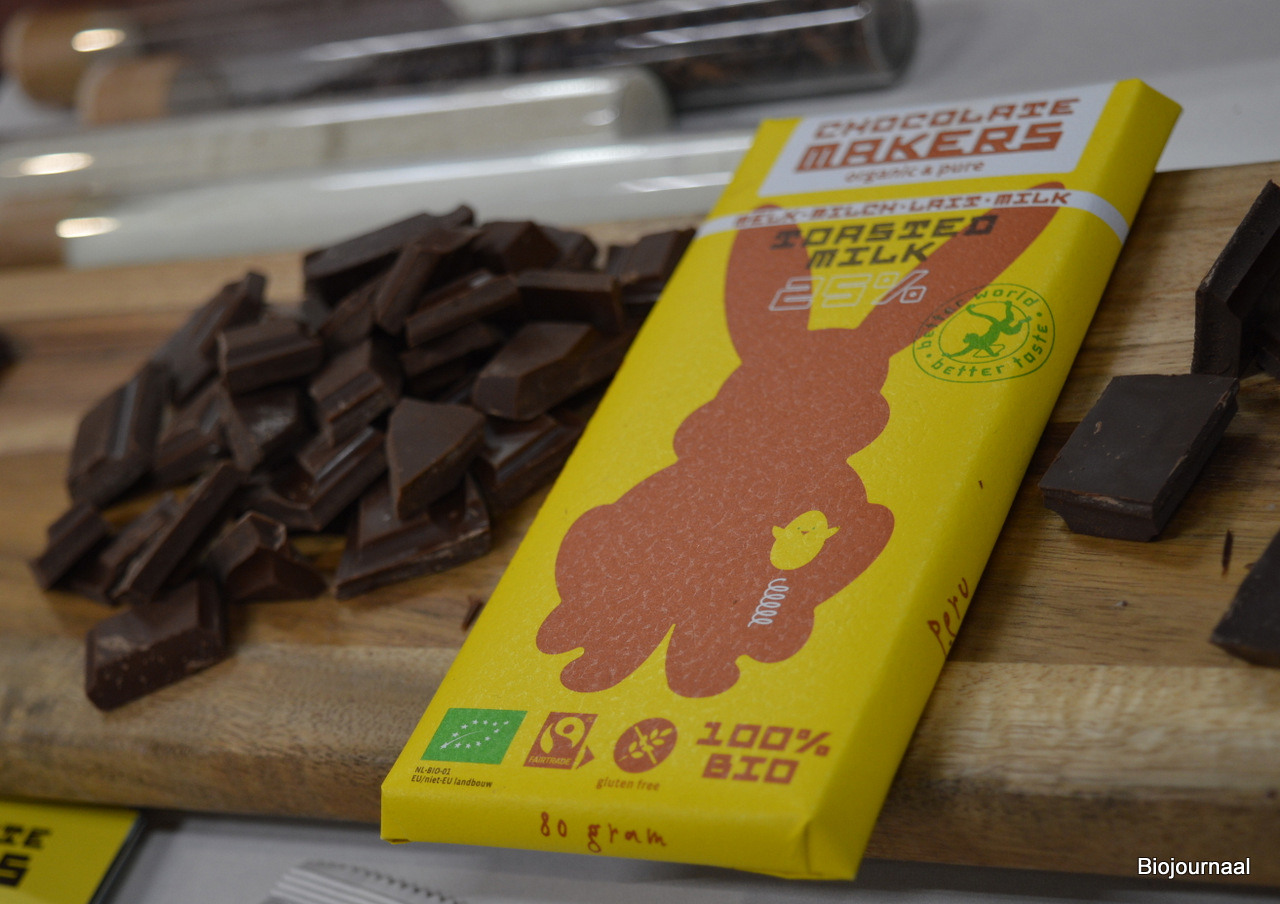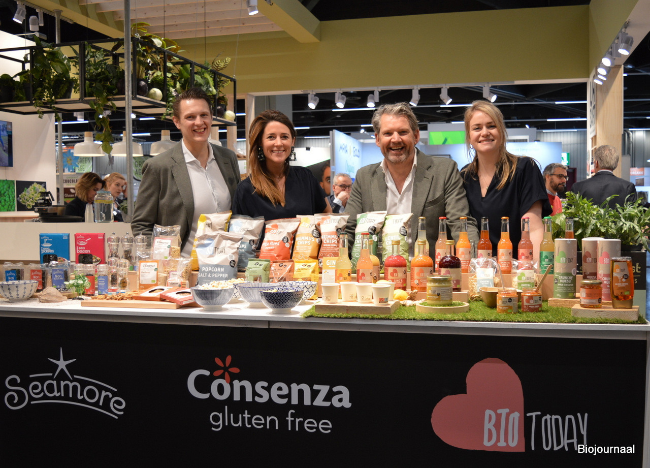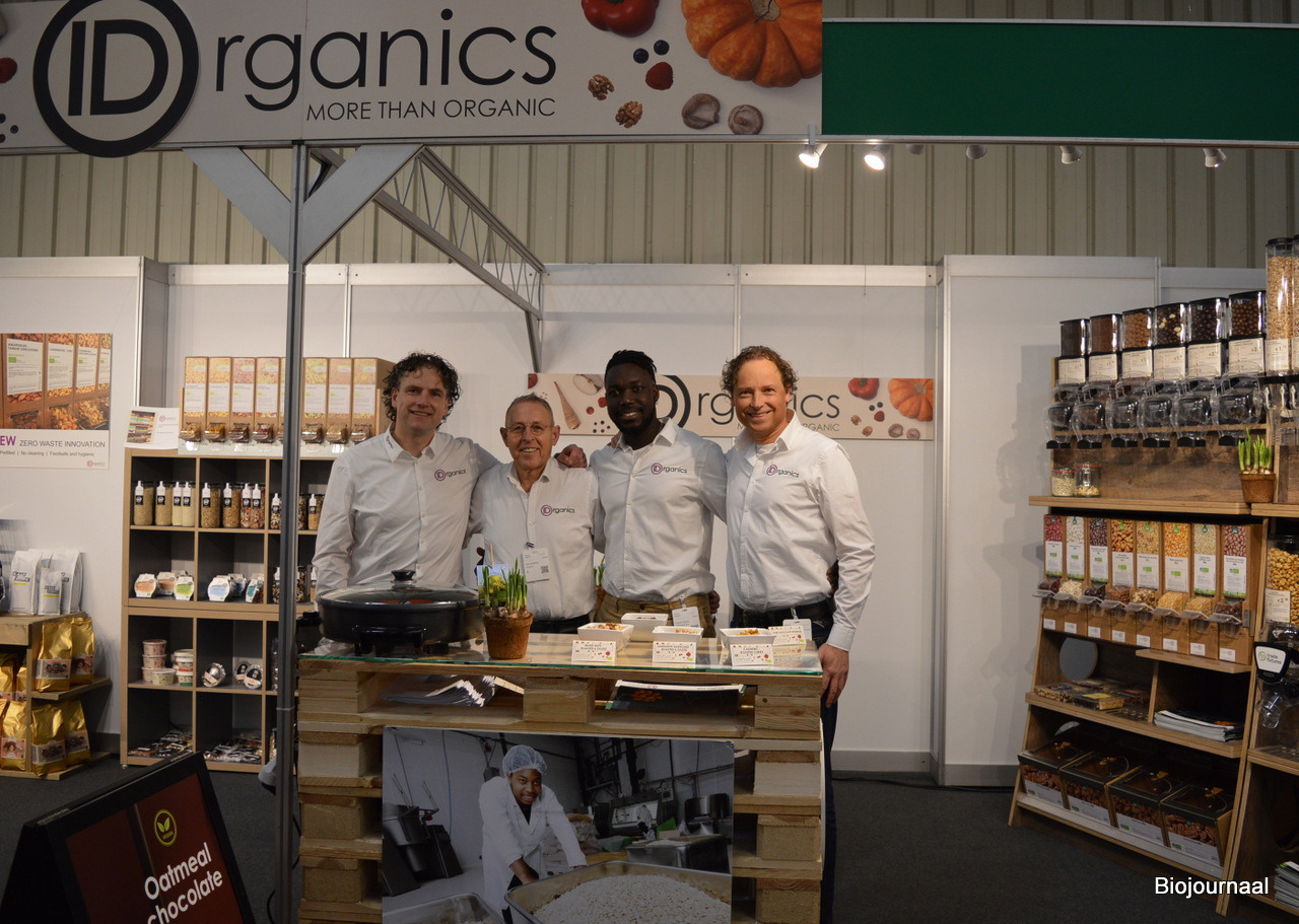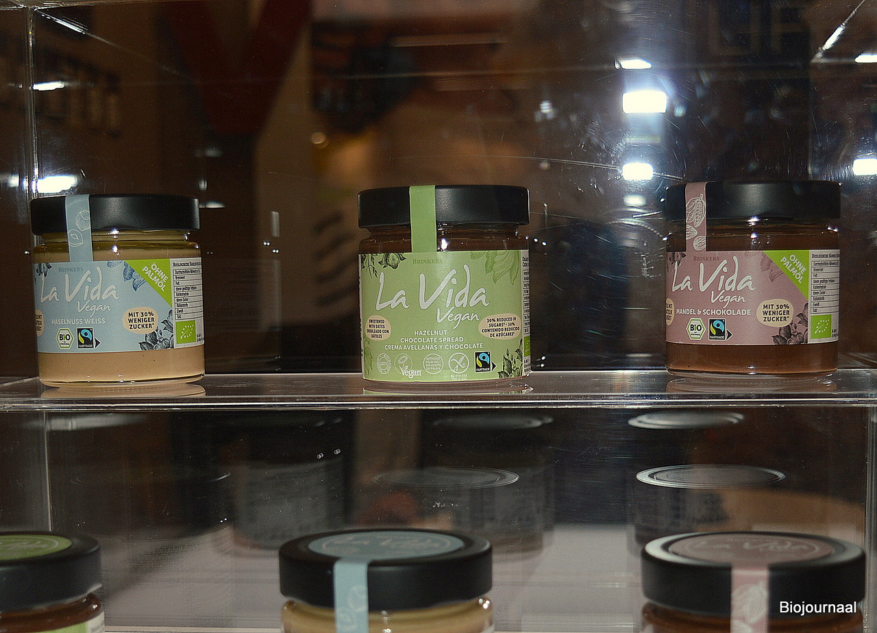 Bonvita stond voor het eerst als productiebedrijf en niet alleen als merk op de Biofach. Erik van Luyn (links op de foto): "Door hier als Organic Chocolate Factory te staan leggen we meer de nadruk op de productiekant en is het veel duidelijker wat we kunnen doen op het gebied van private label." Naast Erik staan Vere en Bart Spoorenberg.