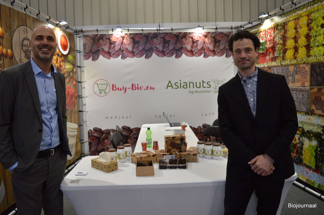 Asianuts stond ook voor de eerste keer als exposant op de Biofach. Gilad Izhaky en Gil Berholz. "We handelen onder meer in medjoul dadels, we spelen in op de groeiende vraag naar biologisch", aldus Gil.