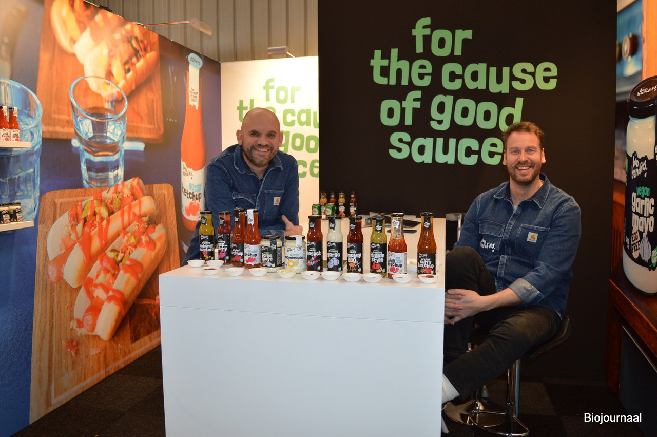 Pieter Bas Alferink en Hans de Boer met de sauzen en dressings van BioBandits.