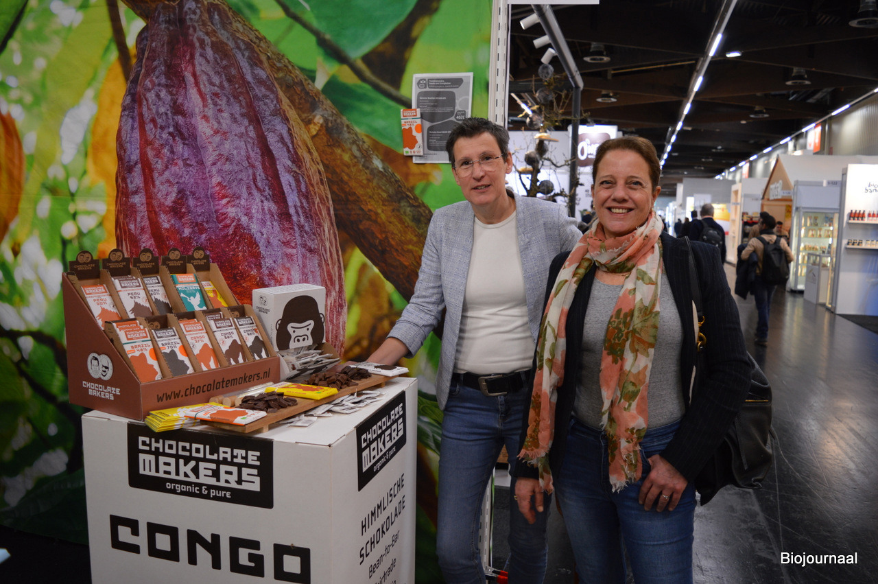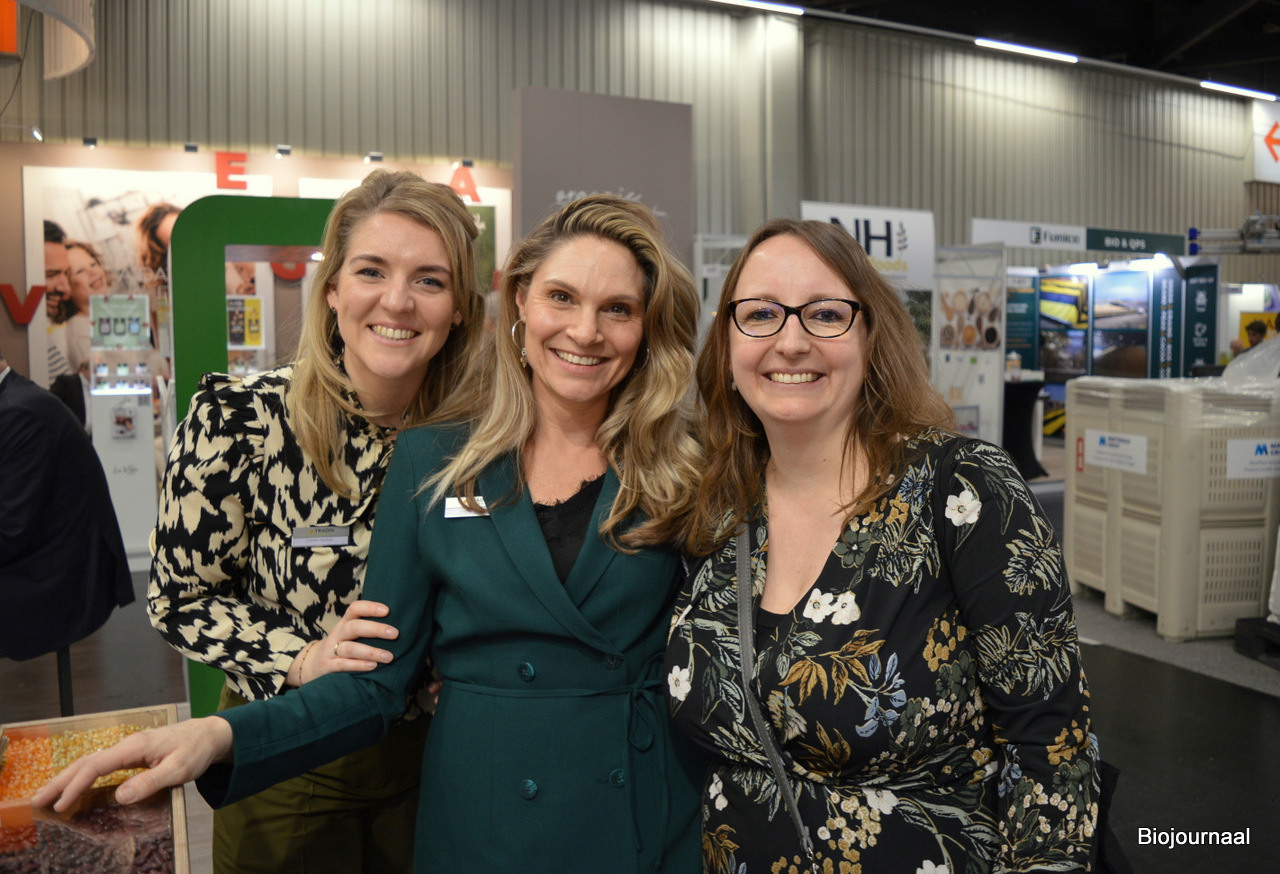 Carmen Gerritsen en Yvonne Titarsole-Kresinger van Tradin Organic Agriculture met Lenneke Pors-Schot van Biojournaal.