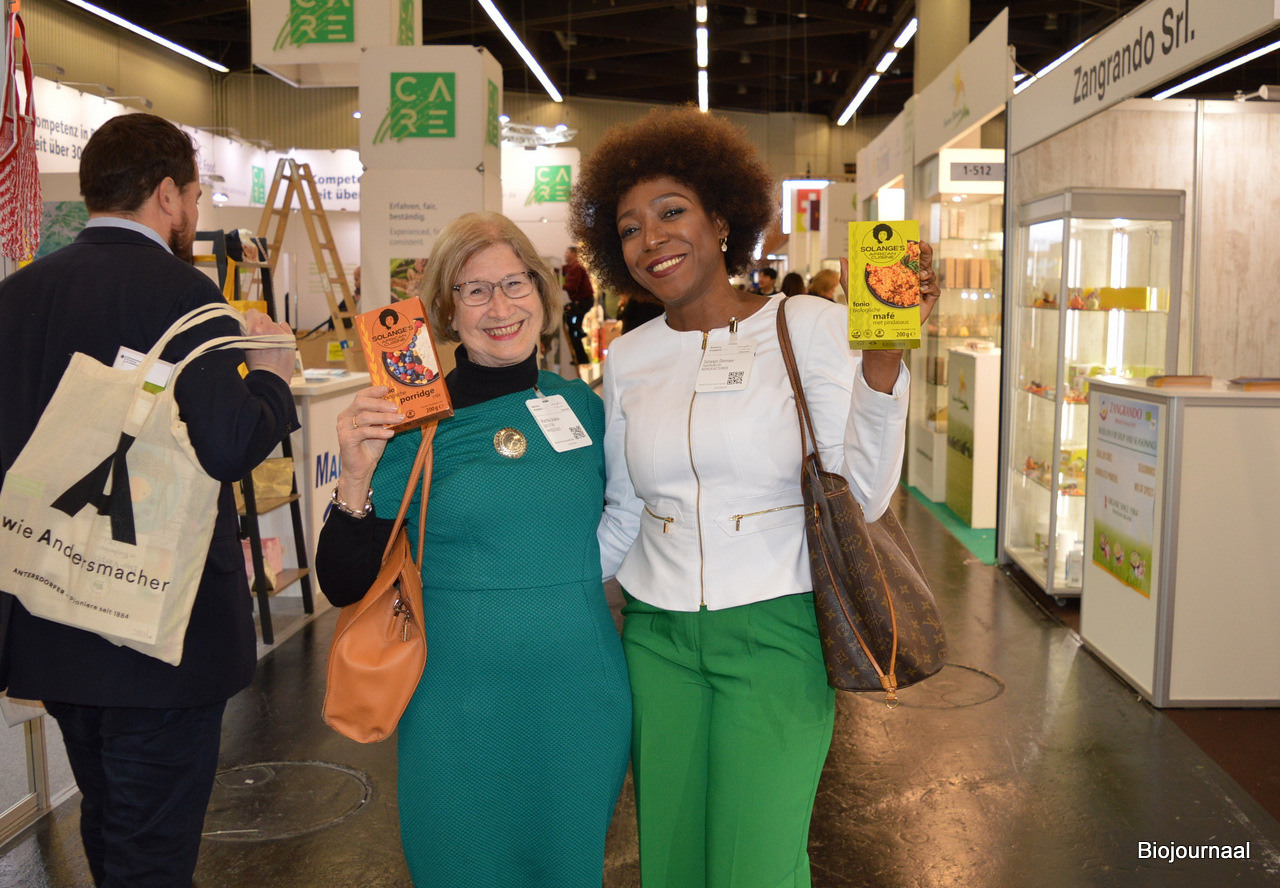 Martha Jeuken en Solange Domaye brachten namens Symfonio een bezoek aan de beurs. Ze tonen een aantal producten van het nieuwe eigen merk Solange's African Cuisine.