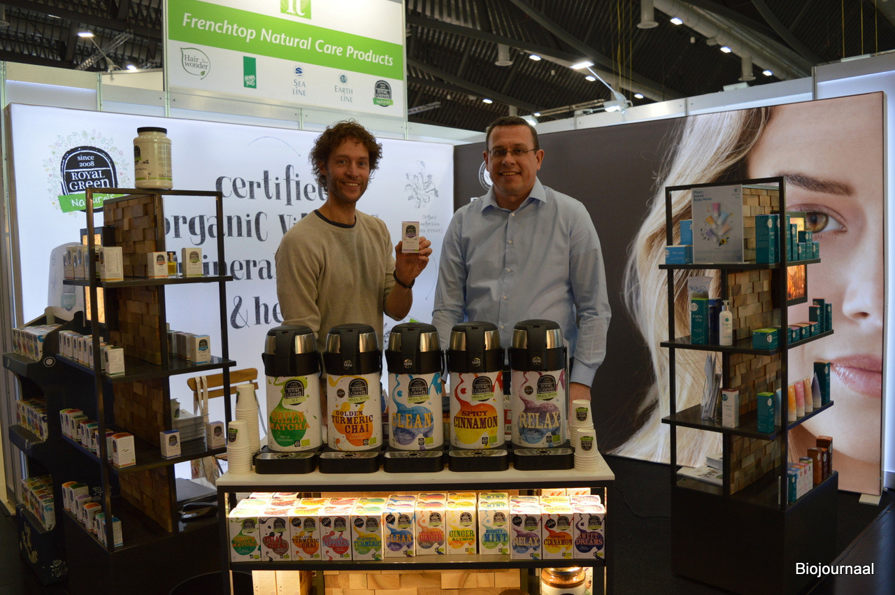 Roy Jongens en Francisco Müller introduceerden bij Frenchtop een aantal nieuwe producten. Roy: "We hebben bio astaxanthine toegevoegd aan ons aanbod. Ook Relax is nieuw. Er is veel vraag naar biologische vitamines en mineralen. Het is nog niet heel druk op de beurs, maar de kwaliteit van de bezoekers is goed."