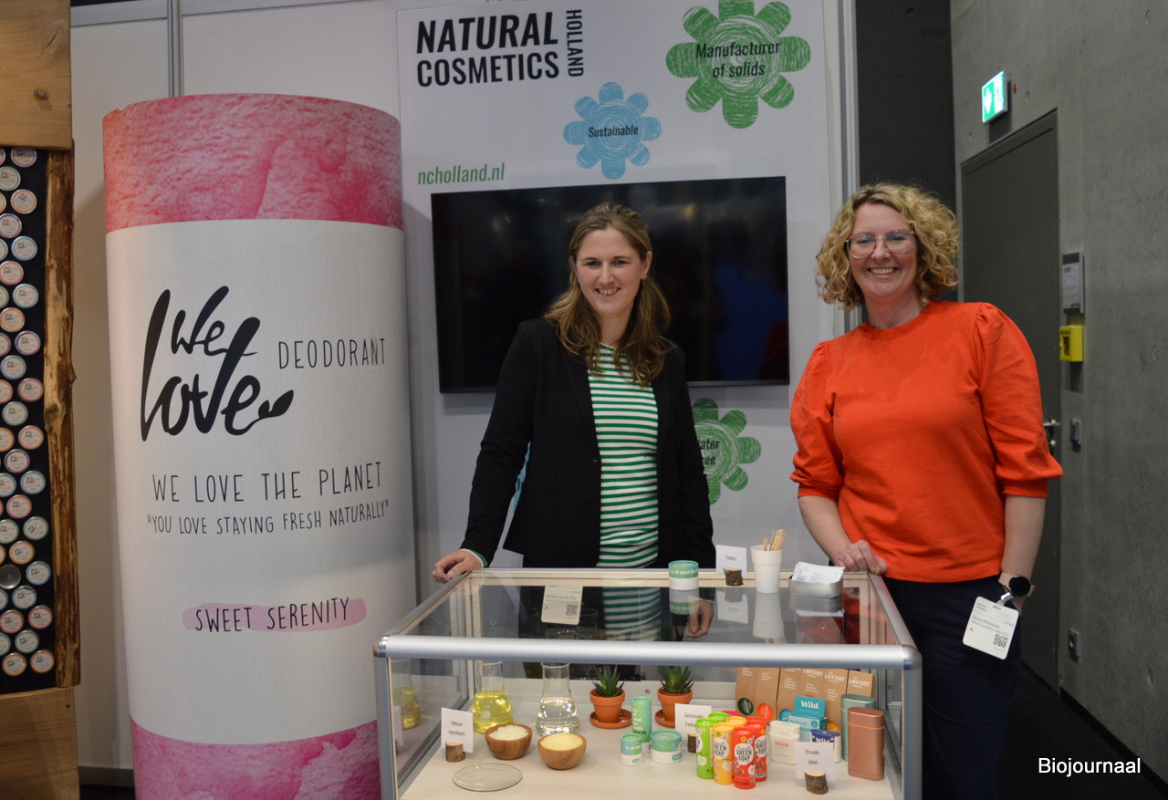 Natural Cosmetics Holland stond bij We Love The Planet in de stand. Zij produceren onder meer allerlei varianten natuurlijke deodorants. Op de foto: Marjolein van den Berg en Hanna Middeljans.