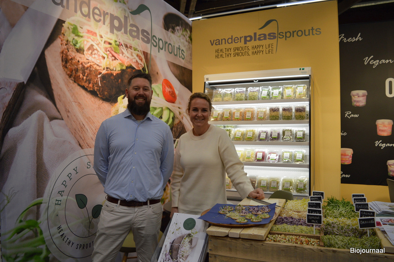 Pepijn van der Plas en Tessa Yntema met de sprouts van Van der Plas Sprouts.