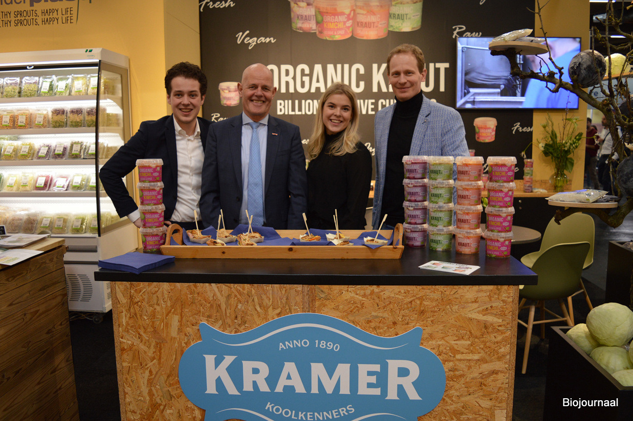 Bij G. Kramer & Zonen kon men proeven van tosti met biologische kimchi. Met: Bram Wagenaar, Gerrie Groot, Isa Zuurbier en Dirk Kramer.