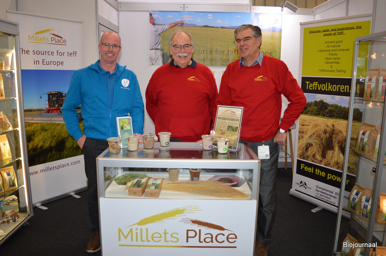 Voor alle informatie over Teff: Millet's Place. Op de foto: Feije Dijksterhuis, Anne Hulst en Ruud van Klaveren. Anne: "Qua samenstelling onderscheidt Teff zich echt van andere granen."