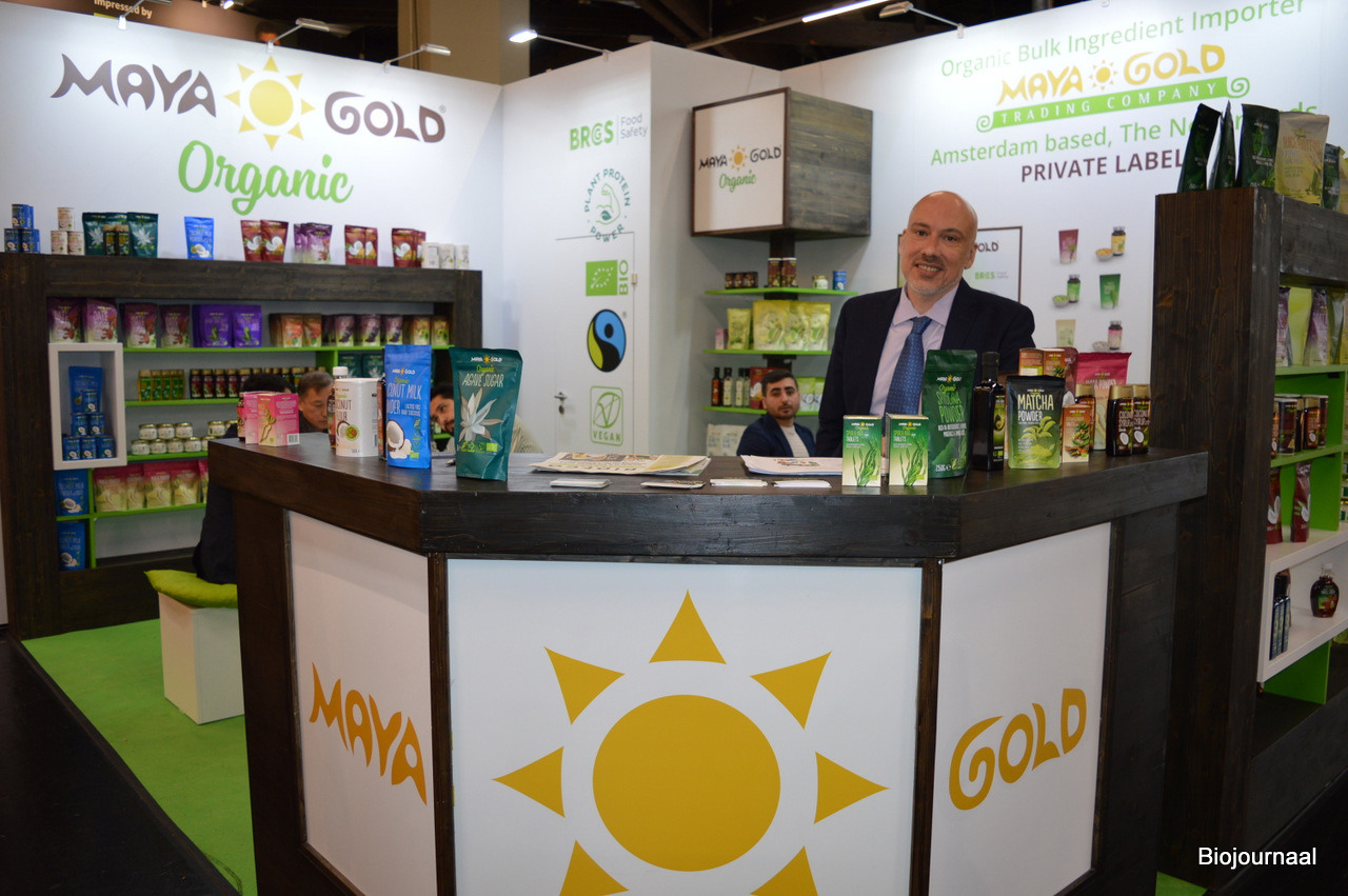 Bij Maya Gold Trading: Frank Berjonnelle. "We hebben onder meer agave, kokos, coating powders en supplementen in ons aanbod." Sinds de zomereditie zijn er geen nieuwe producten meer gepresenteerd. Toen kwamen ze met ashwagandha, guarana en maca.