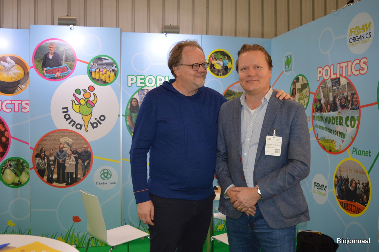 Boudewijn van der Kroft (TerraSana) met Ronald van Marlen (rechts) van NANA Bio.