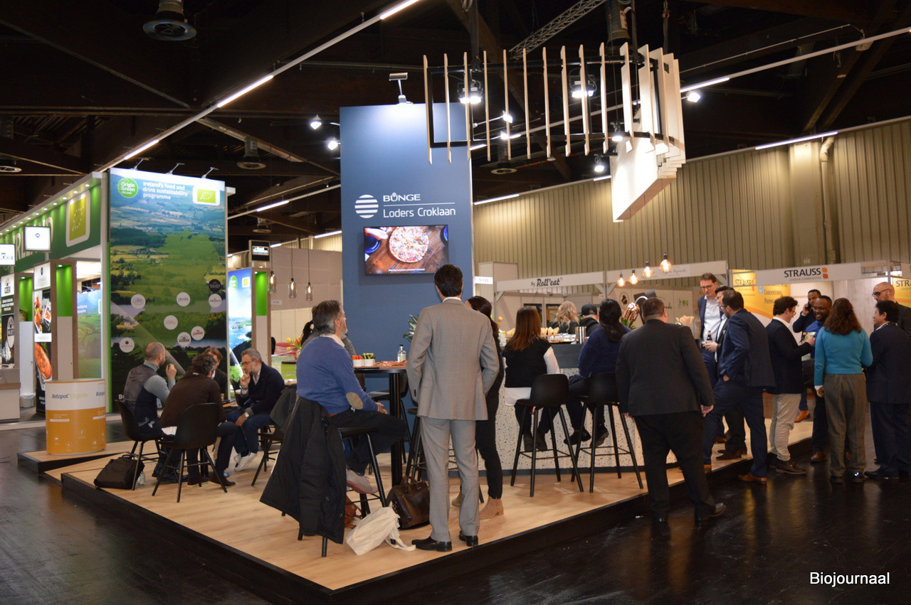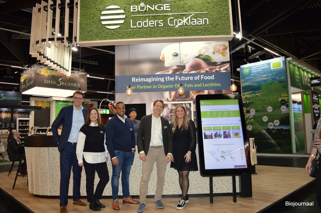 Bunge Loders Croklaan debuteerde tijdens de zomereditie op de Biofach en was er ook nu weer bij. Tim Olsthoorn, Julia Prusakova, Mitchell Pengel, Erik van Straaten en Didi Loor. (en achter de bar staat Hang Kam Man). In de stand van de leverancier van plantaardige oliën, vetten en lecithines voor de voedingsindustrie viel veel te proeven en te zien, zodat (potentiële) klanten een goed beeld konden krijgen van wat Bunge kan betekenen als het gaat om oplossingen op het gebied van oliën en vetten.