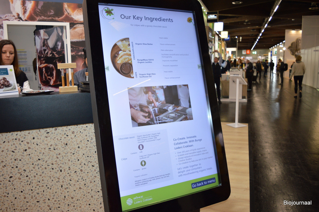 Op dit scherm konden bezoekers meer informatie verkrijgen over Bunge en de activiteiten van het bedrijf.
