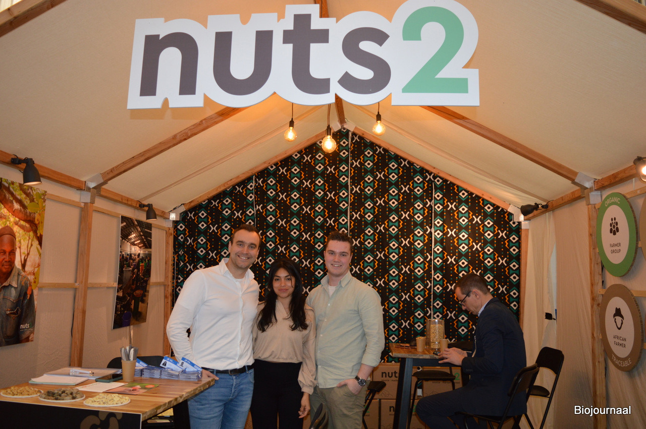 Jan Wiggelink-Huijsen, Yara Carreño en Tjerk Janse bij Nuts2, dat de vers geoogste noten lokaal verwerkt en fabrieken heeft in Burkina Faso en Benin. Tjerk: "We verzetten echt pionierswerk in Burkina Faso, door de oogst van de boeren rechtstreeks te verwerken. We maken winst om de mensen daar te helpen."